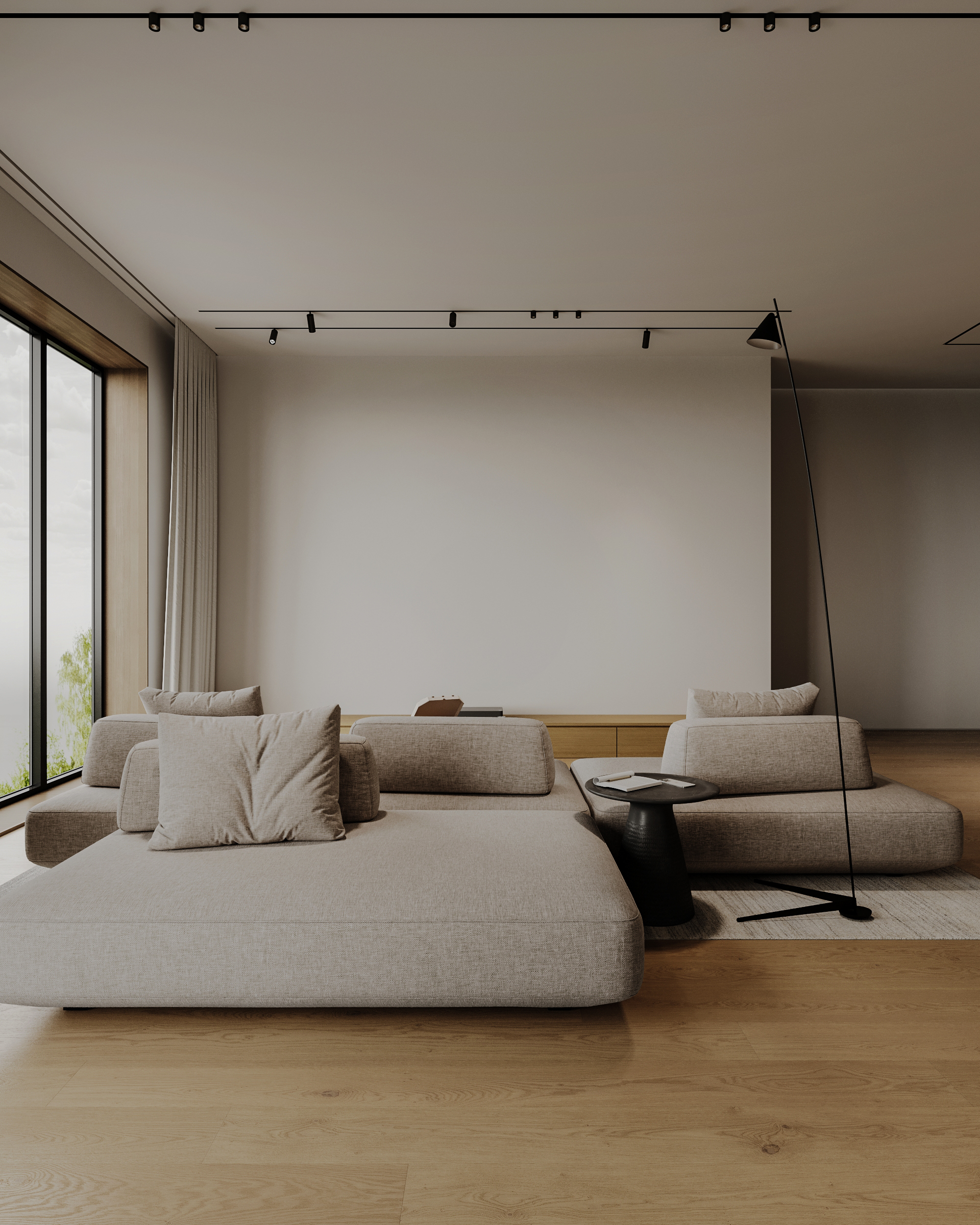 Minimalist Livingroom : Daylight to Nighttime Cinema
