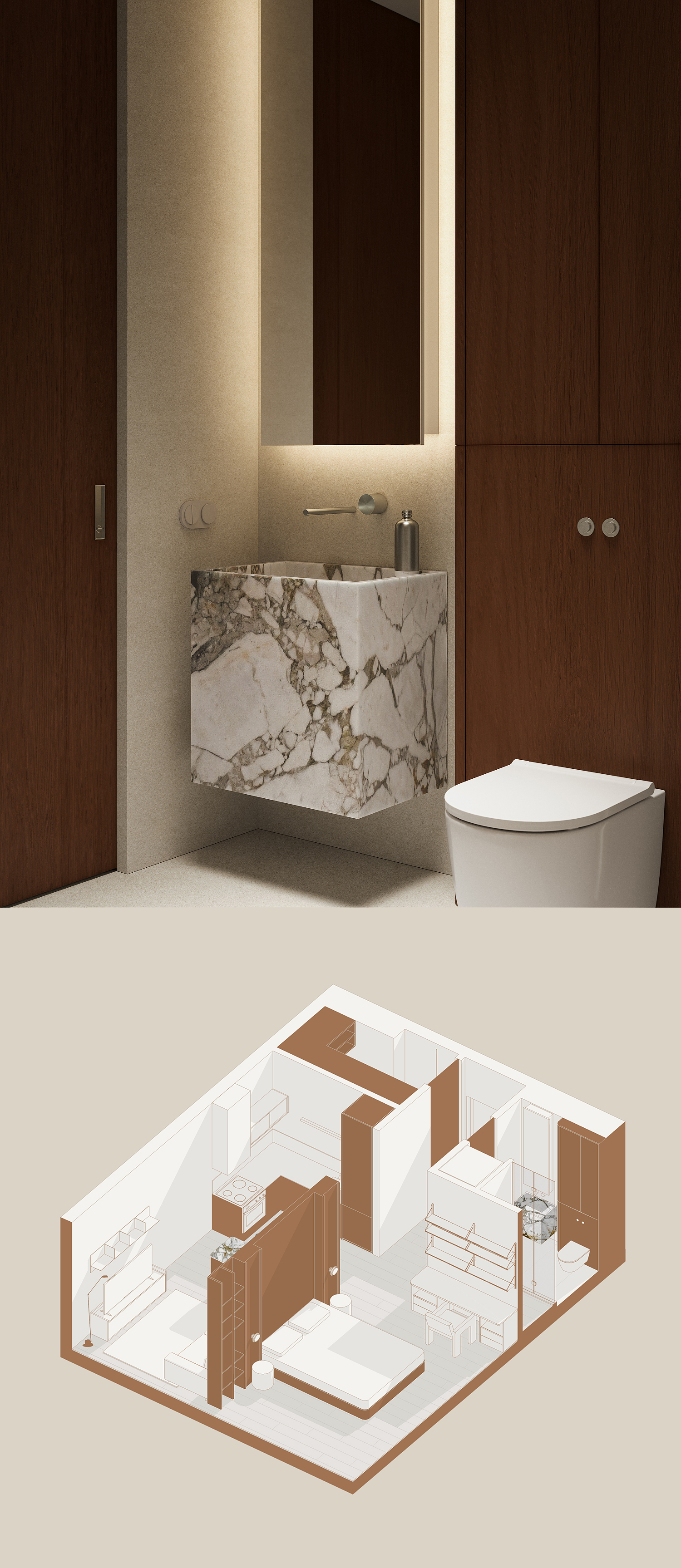 MINIMALISTIC STUDIO APPARTMENT conceptual project 2025 design and cg | Kristina Matyushenko full project