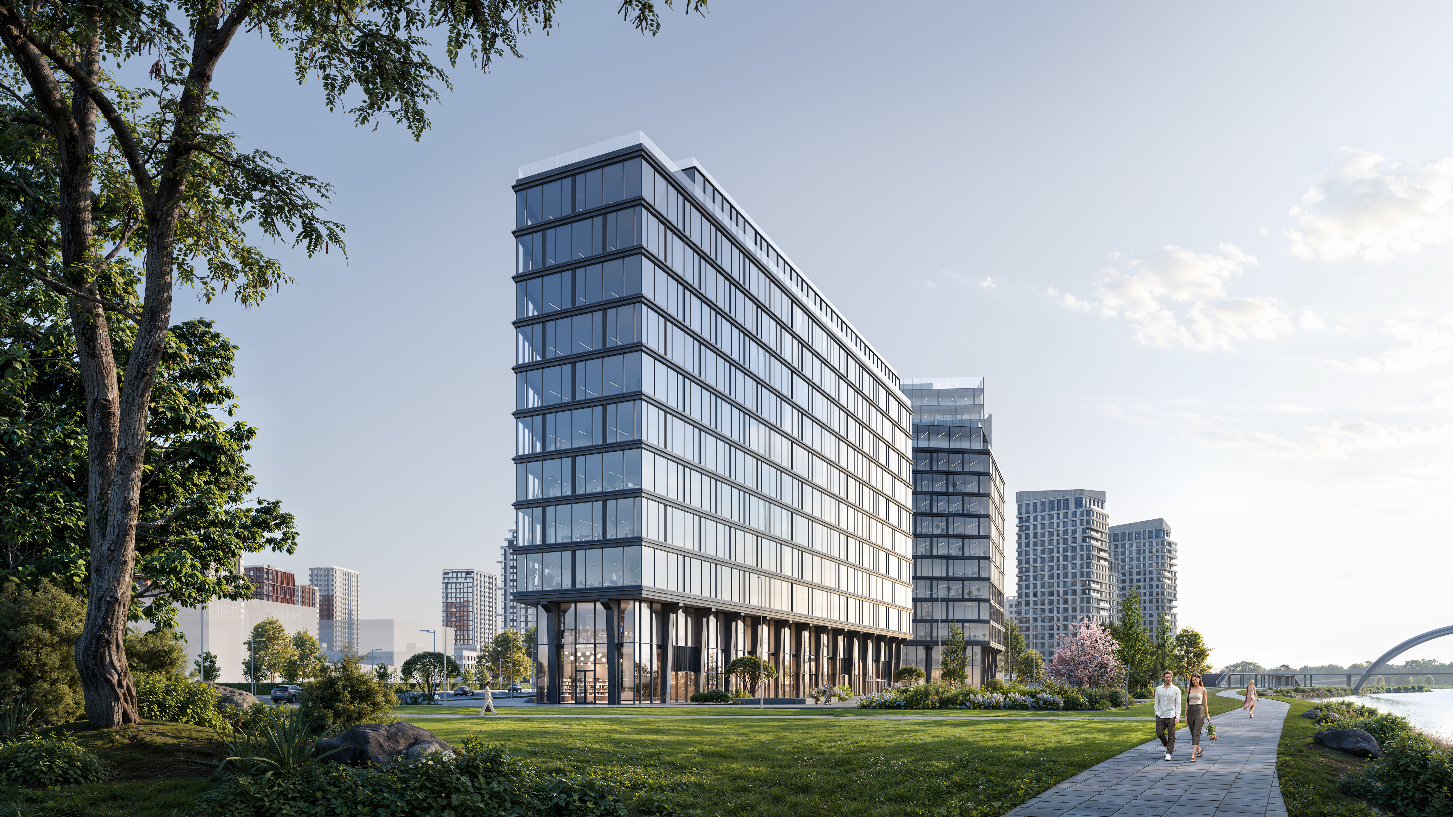 Бизнес-центр класса А на реке с большой парковой зоной и рекой. Особенностью проекта является активное освоение прибрежных территорий и создания современной спортивной инфраструктуры