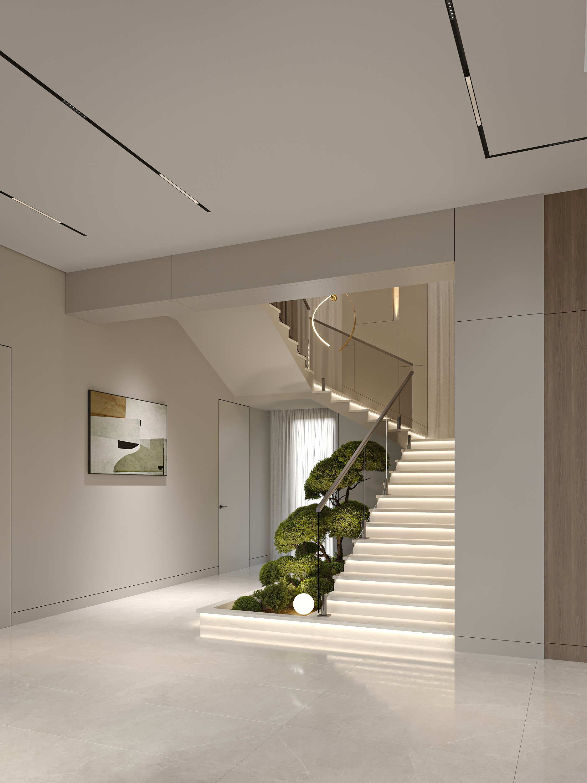 Хорошо всё получилось, хорошая подача, но этот симметричный мрамор или гранит на два этажа лично мне не нравится, и не знаю почему в последнее время в проекты ставят людей, мне кажется они лишние тут