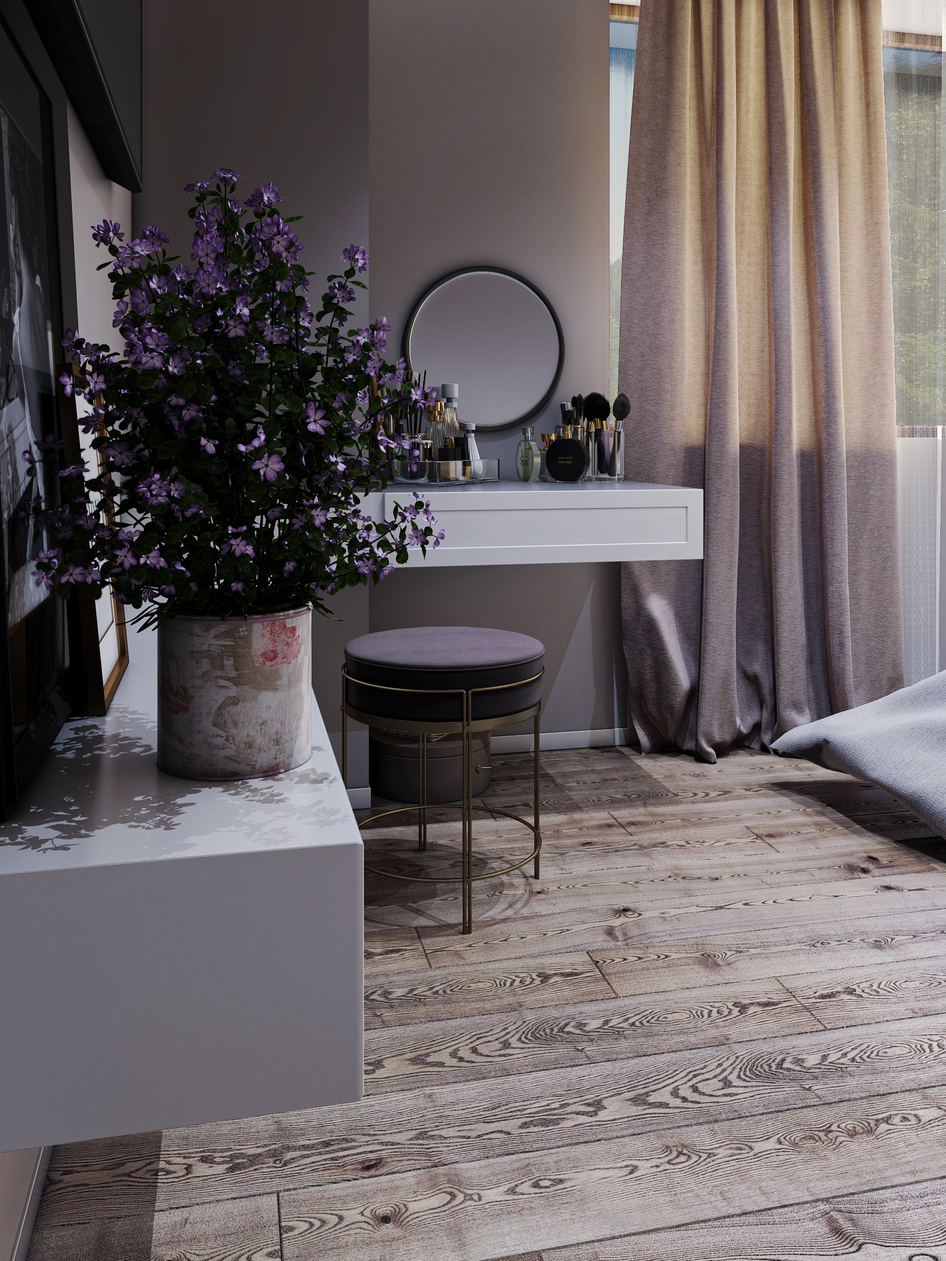 What does every girl need in her bedroom? Comfortable bed, awesome toilet table and fresh flowers!