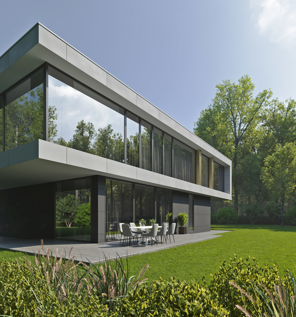 MODERN HOUSE. ARCHITECTURAL PROJECT AND RENDERING
