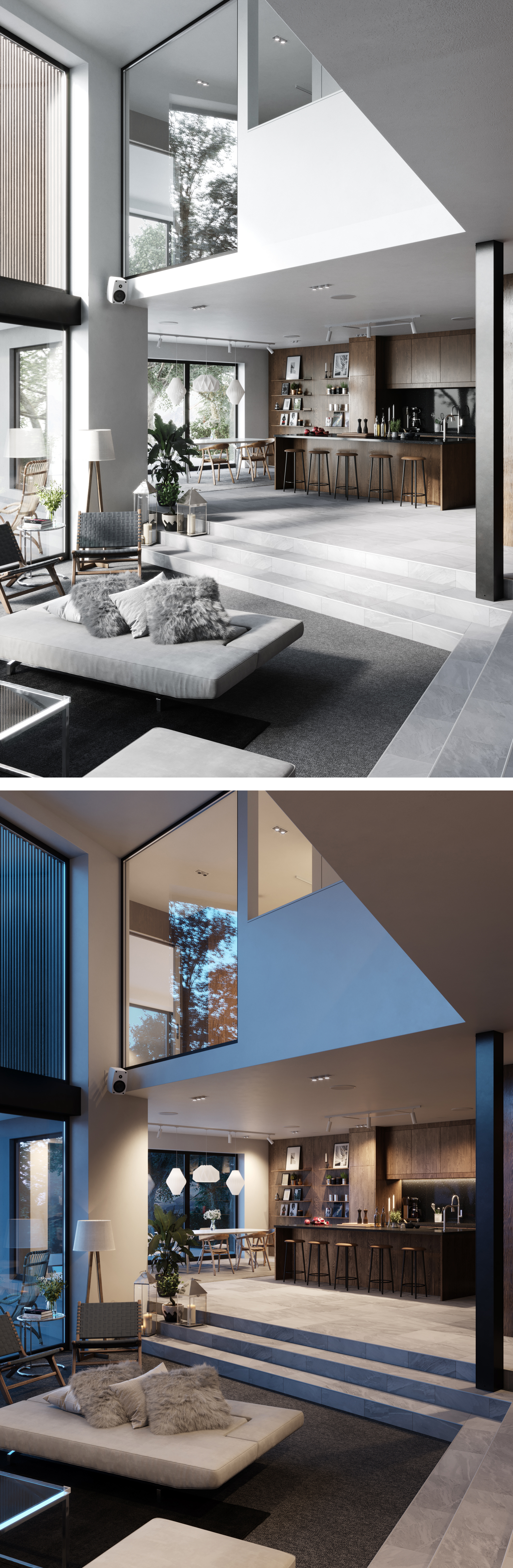 Хочу в таком жить ... в меру открытое пространство, не скучно, но в то же время не перегружено. окна бы малость притемнил бы наверное, что б не совсем аквариум был.