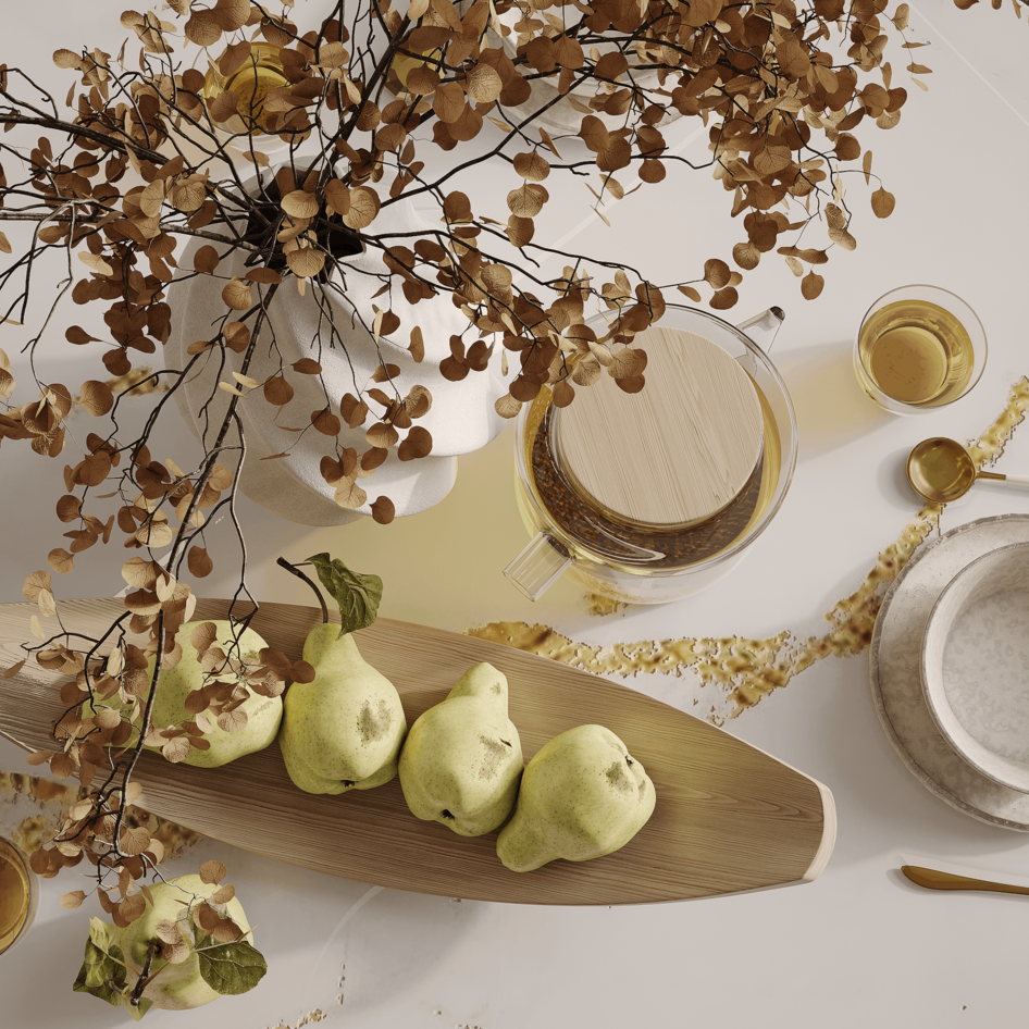 попробуйте в клоузапе исключить бекграунд из камеры и вы удивитесь как пропадут черные пятна на грушах))) на 1 и 3 рендере хорошо видно