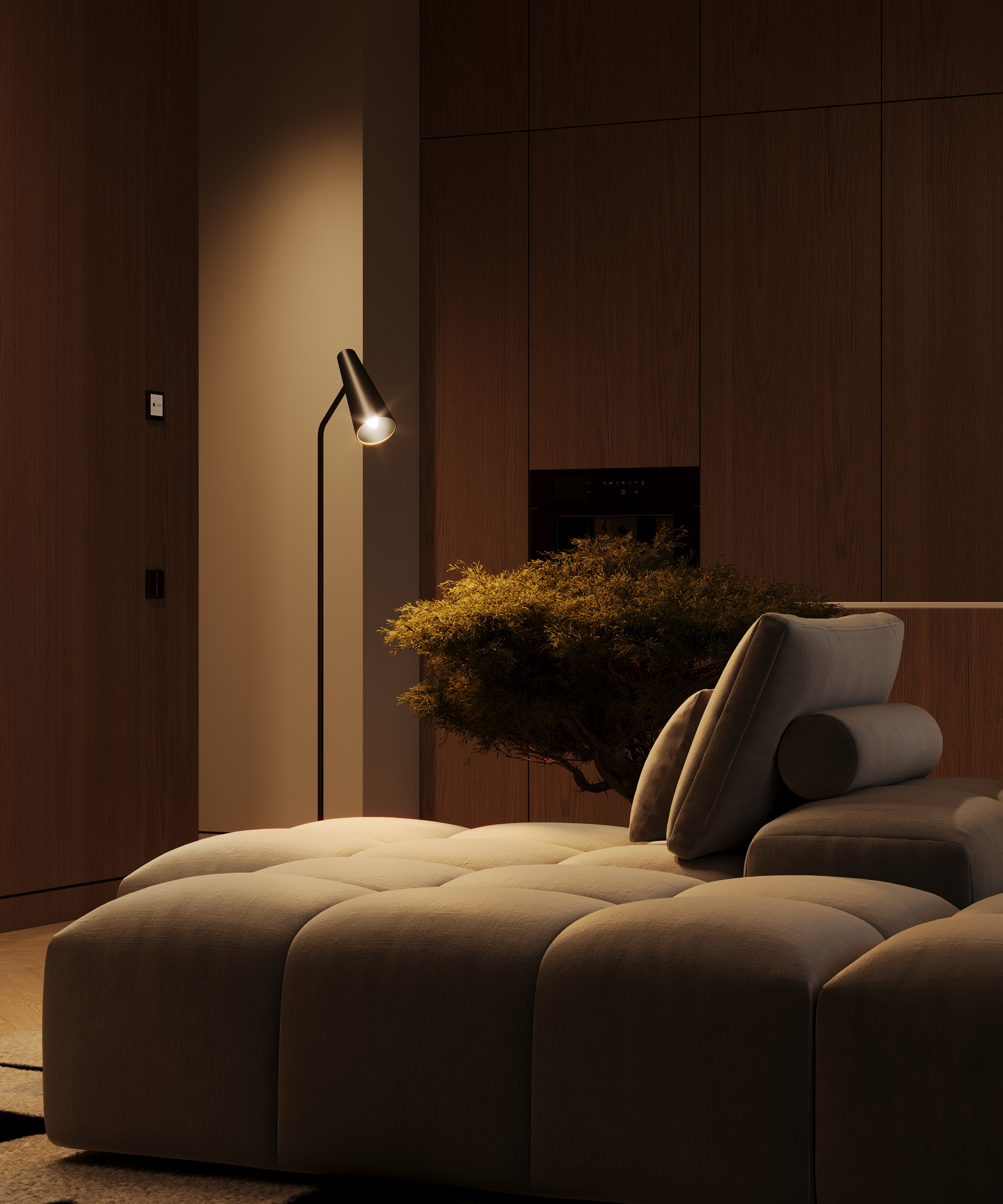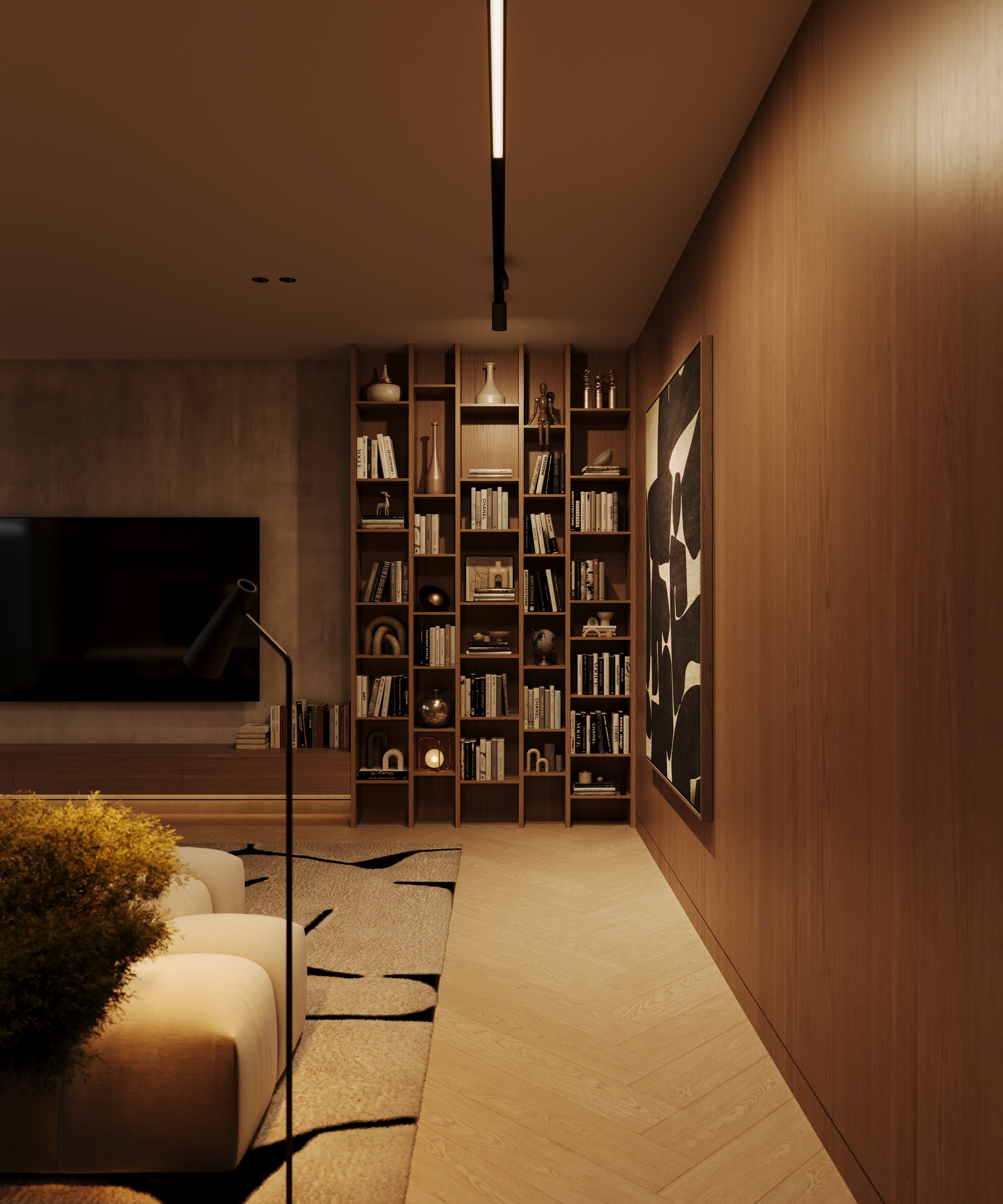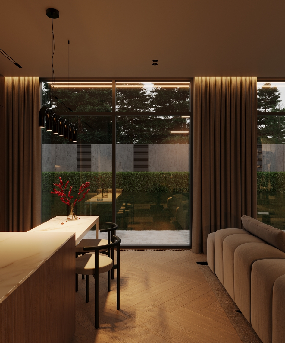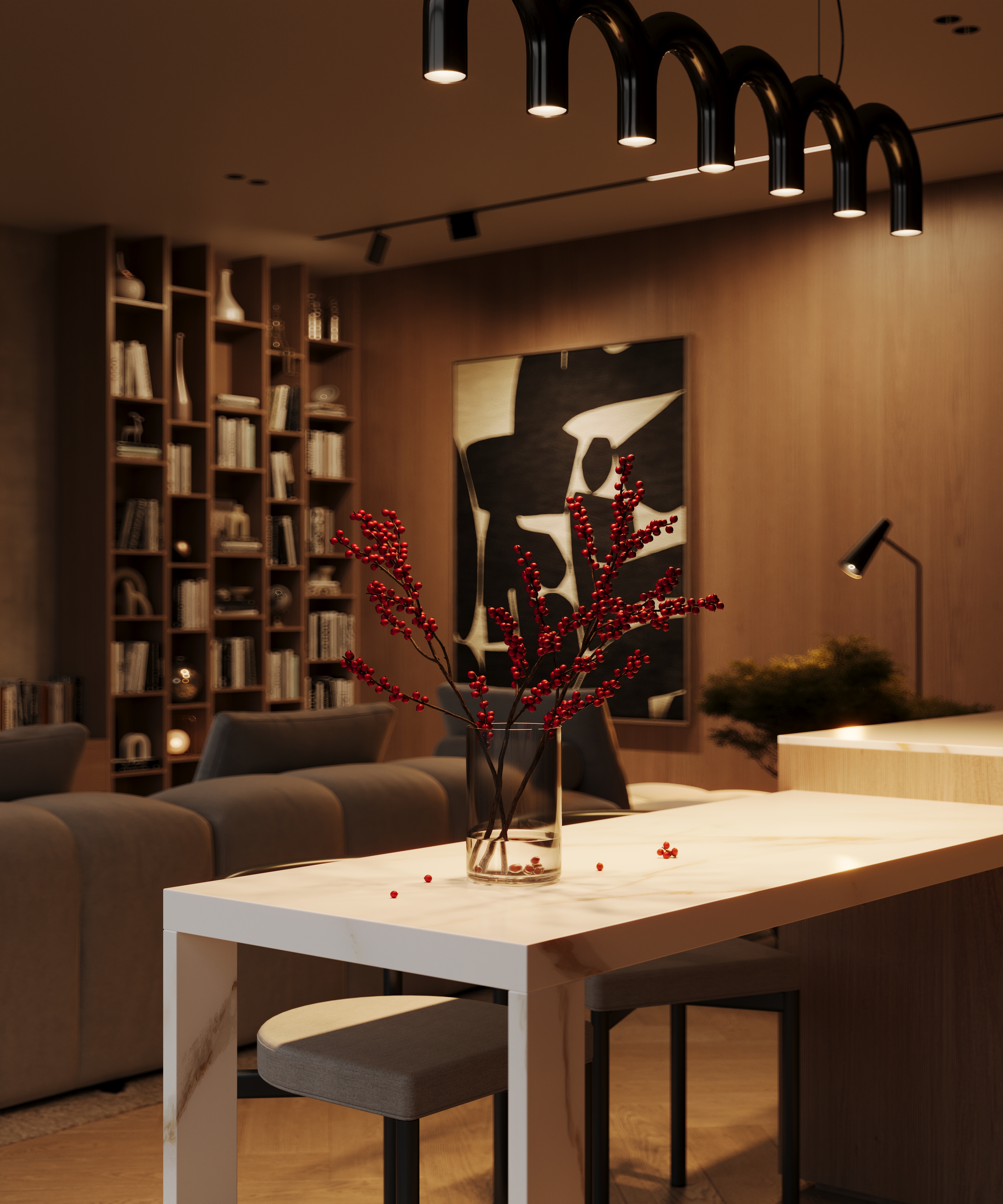Тёплые оттенки дерева, мягкие текстуры и приглушённый свет создают атмосферу спокойствия и стиля. Лаконичная мебель, природные акценты и простор делают этот интерьер идеальным местом для отдыха и вдохновения