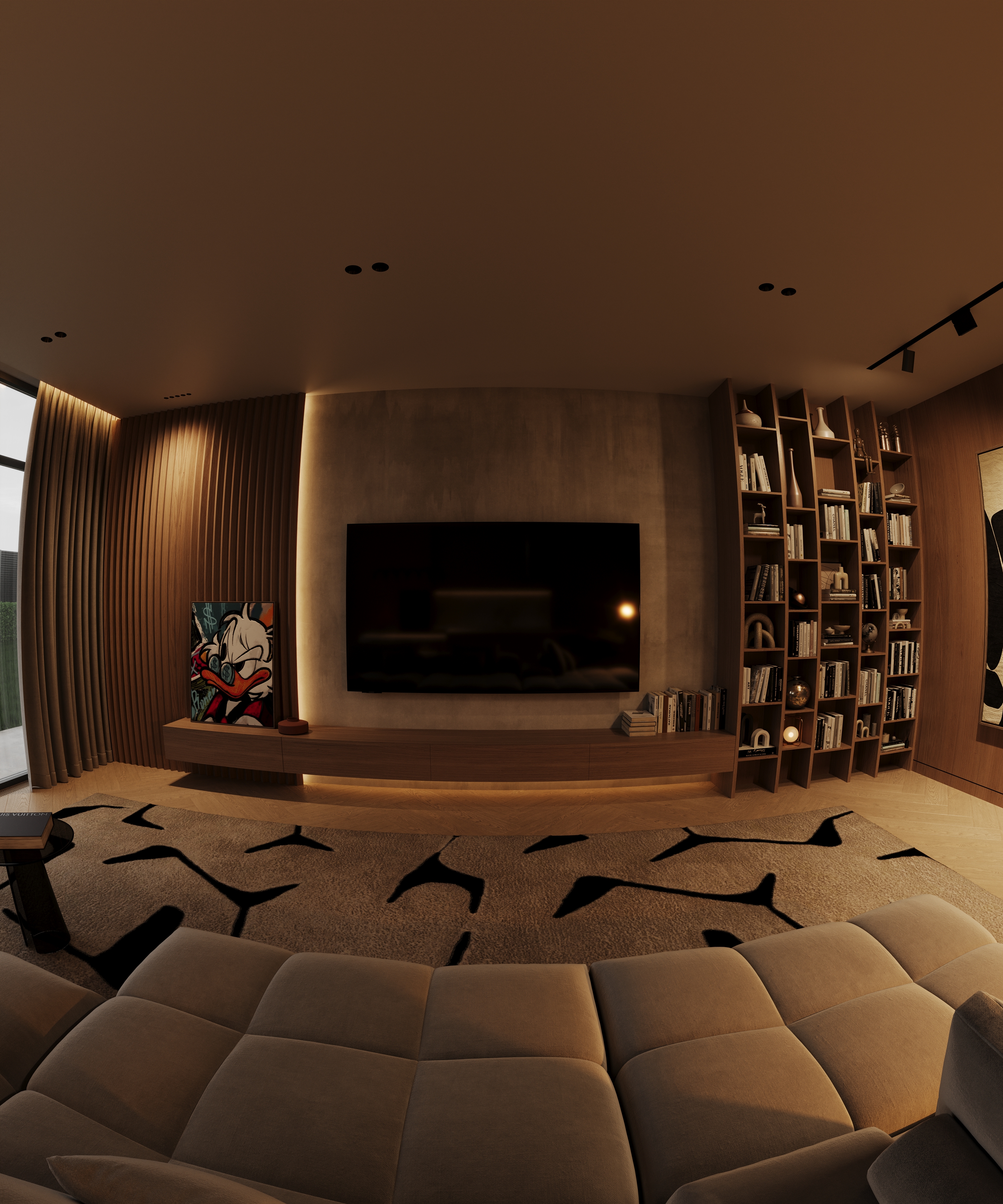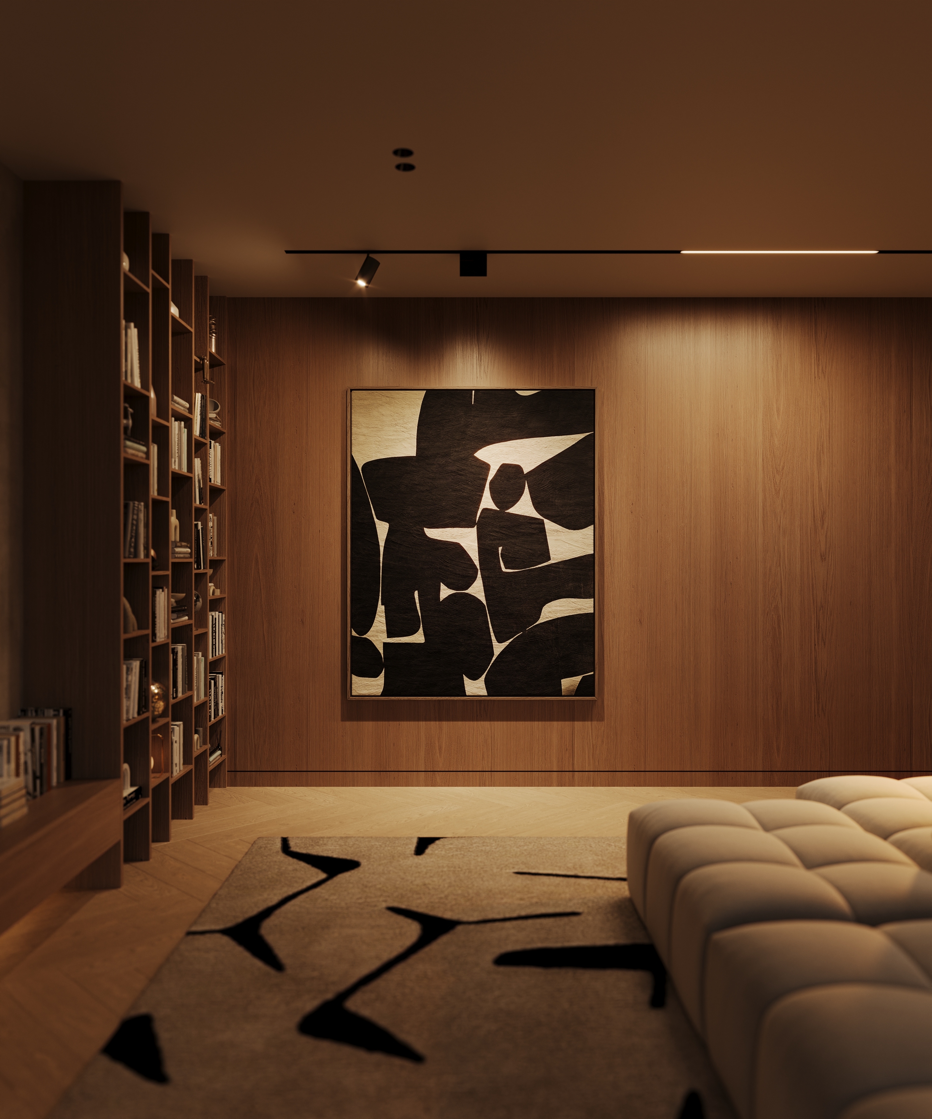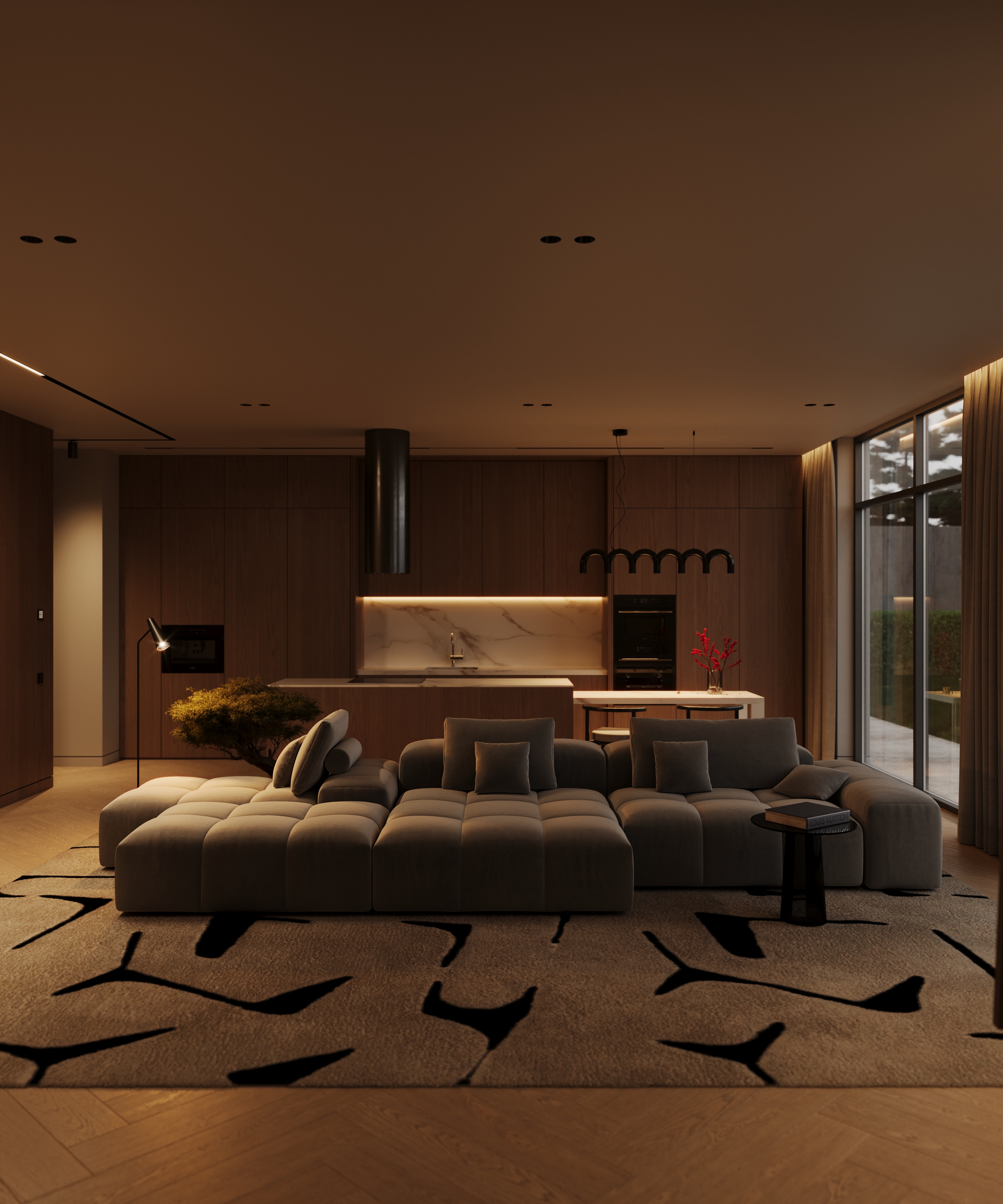 Тёплые оттенки дерева, мягкие текстуры и приглушённый свет создают атмосферу спокойствия и стиля. Лаконичная мебель, природные акценты и простор делают этот интерьер идеальным местом для отдыха и вдохновения