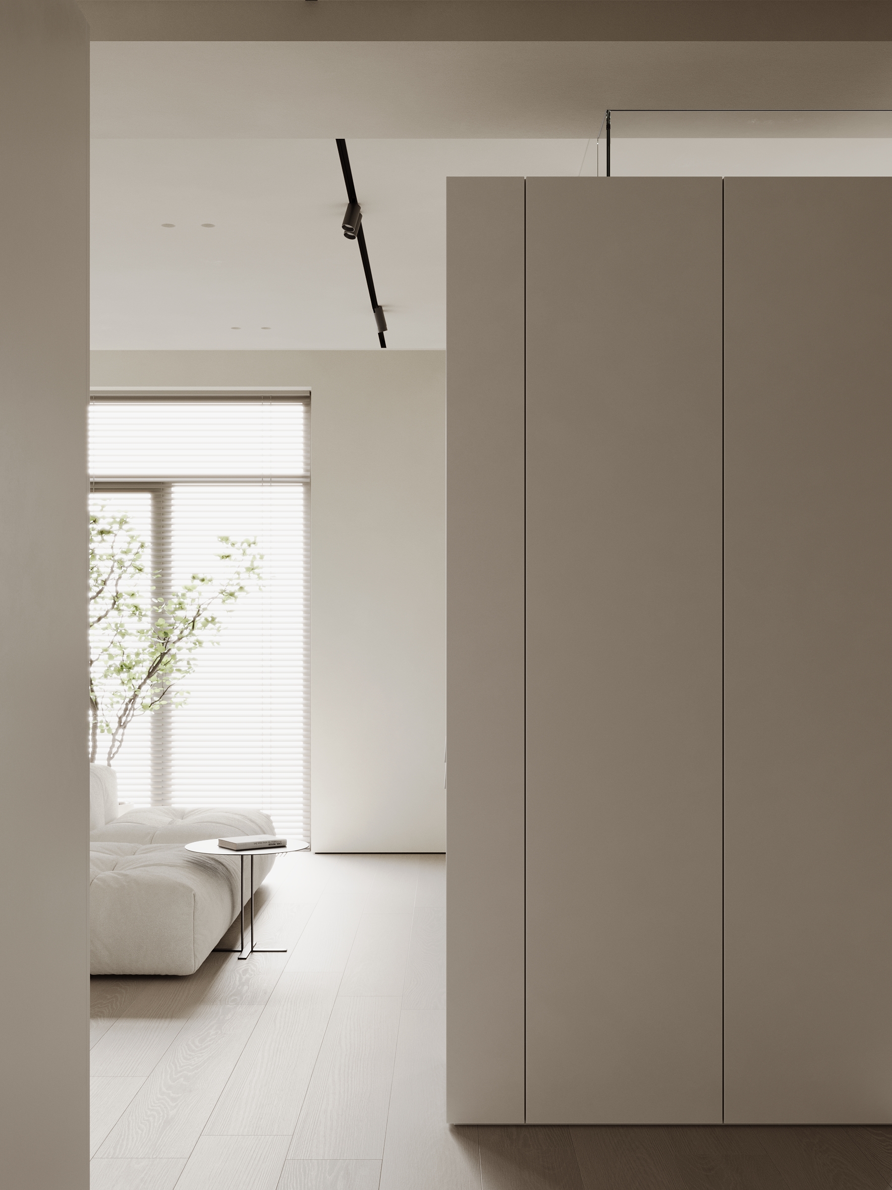 Интересная квартира с точки зрения планировки и дизайна в монохроме. Дизайн: Анна Тверскова Визуализация: Эльвира Поддубкова Больше ракурсов, планировку и анимацию можно посмотреть на Be: