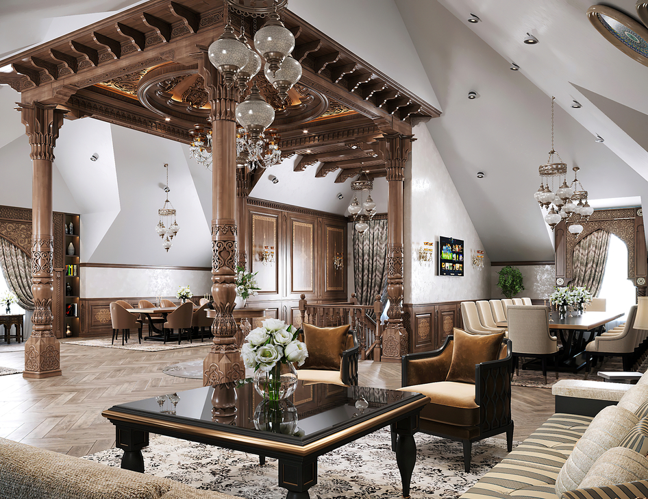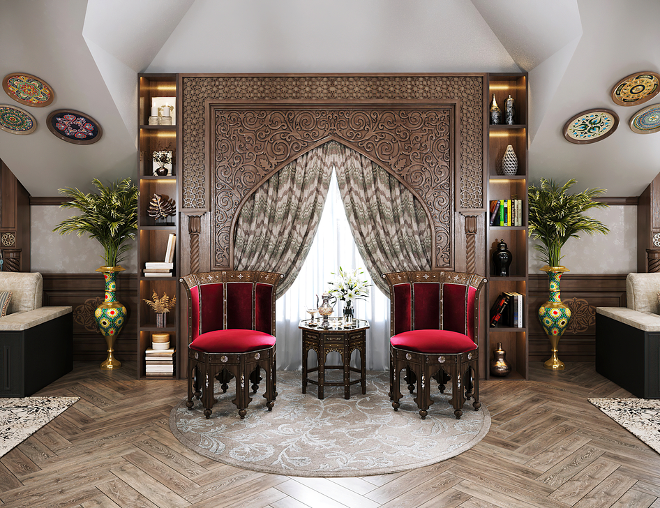 классная работа, хорошее сочетание. центральная чать отлично встроена, в целом напоминает шатёр (ну такое впечатление сложилось). Рубиновые кресла-шикардос. одно только наверное-зря телик включен, итак элементов море, чтоб ещё телик рябил.ну и на вечернее б посмотреть освещение...