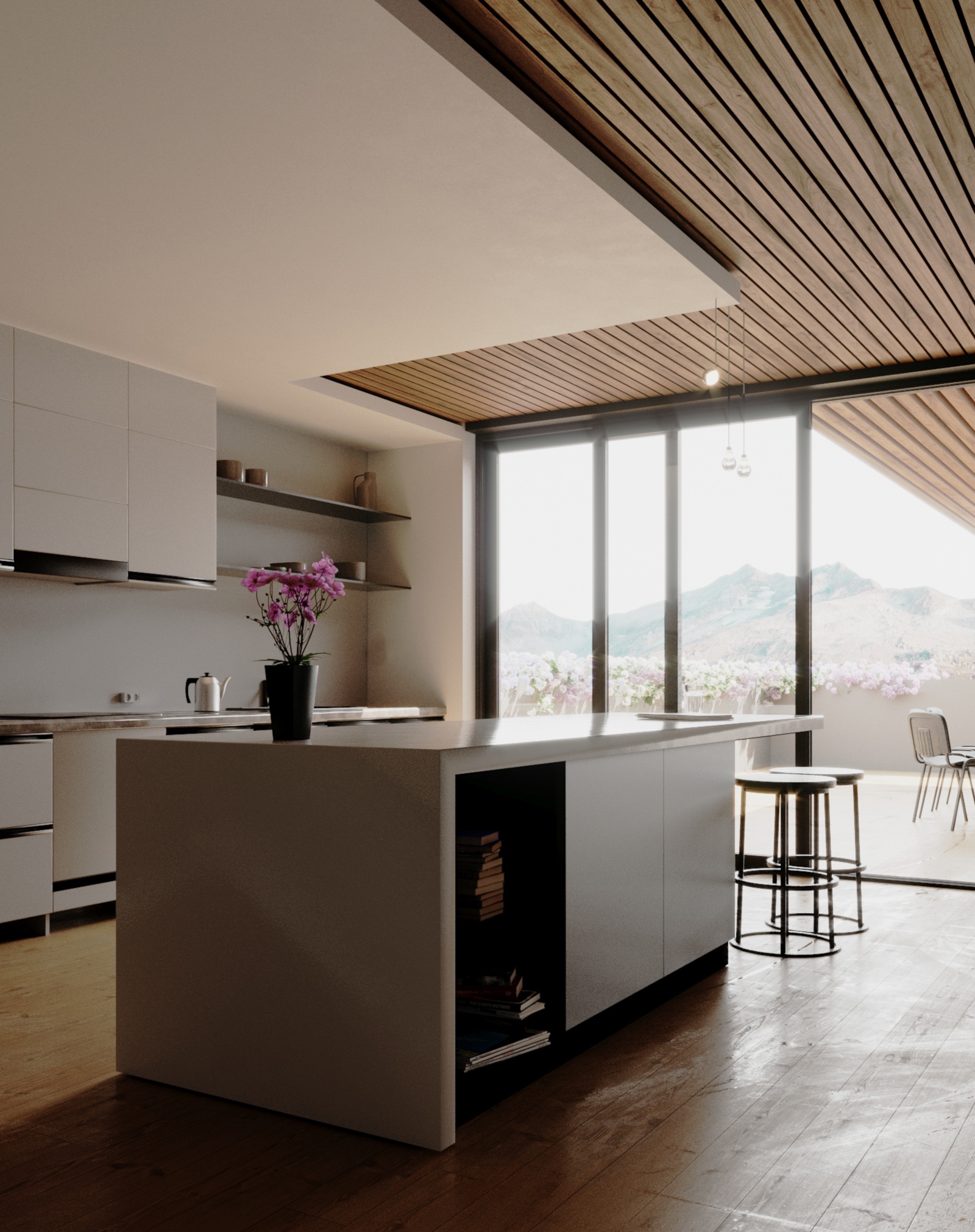 Mountain view flat interior.