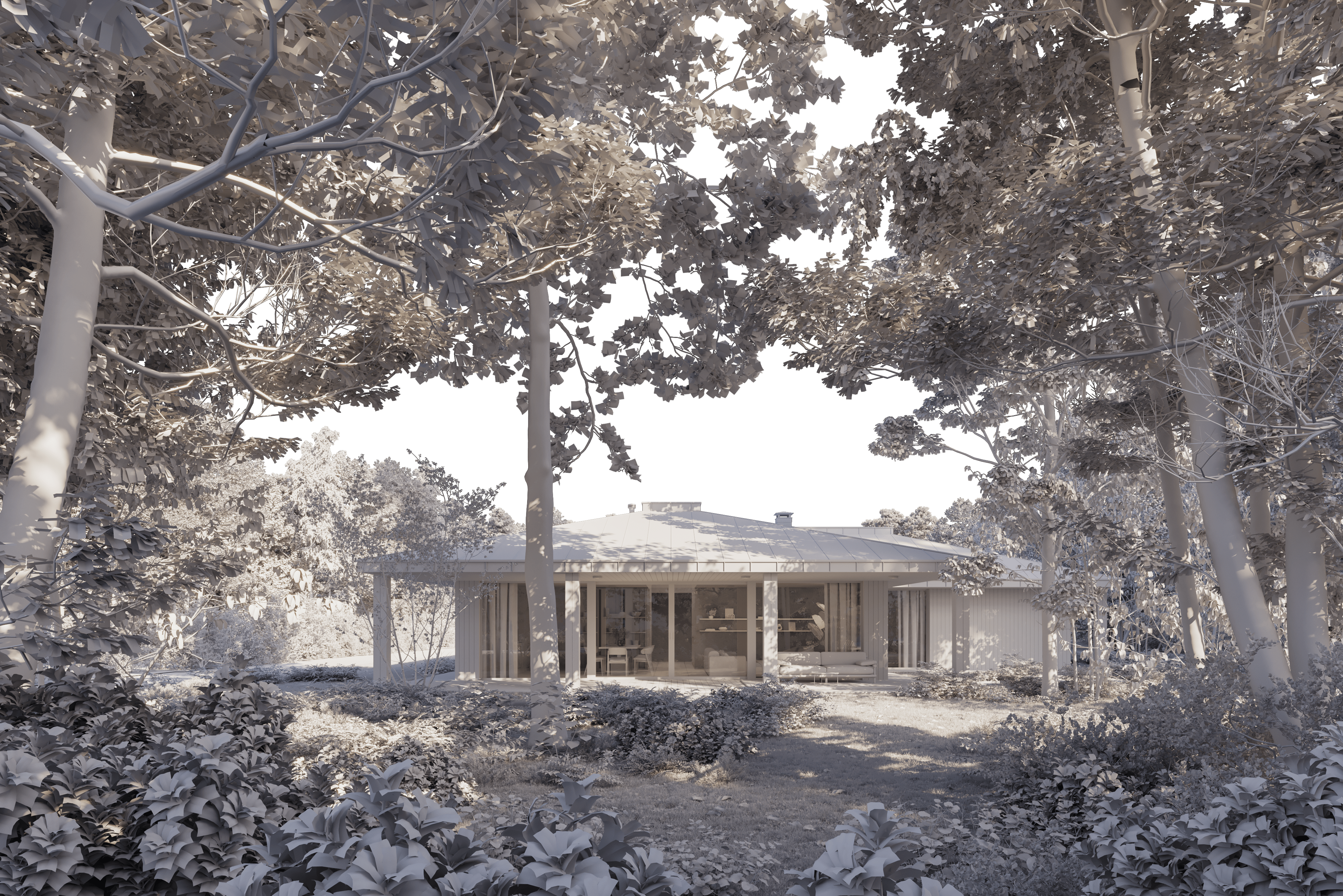 Нашёл немного времени, чтобы заняться портфолио — давно хотел сделать что-то спокойное и природное.Эта работа — визуализация уютного дома среди леса по проекту Kruk Architecture. Хотелось передать ощущение тишины, уединения и мягкого солнечного света, пробивающегося сквозь деревья.Старался максимально сохранить естественность и атмосферу места — без перегруза эффектами, просто честная и тёплая картинка.