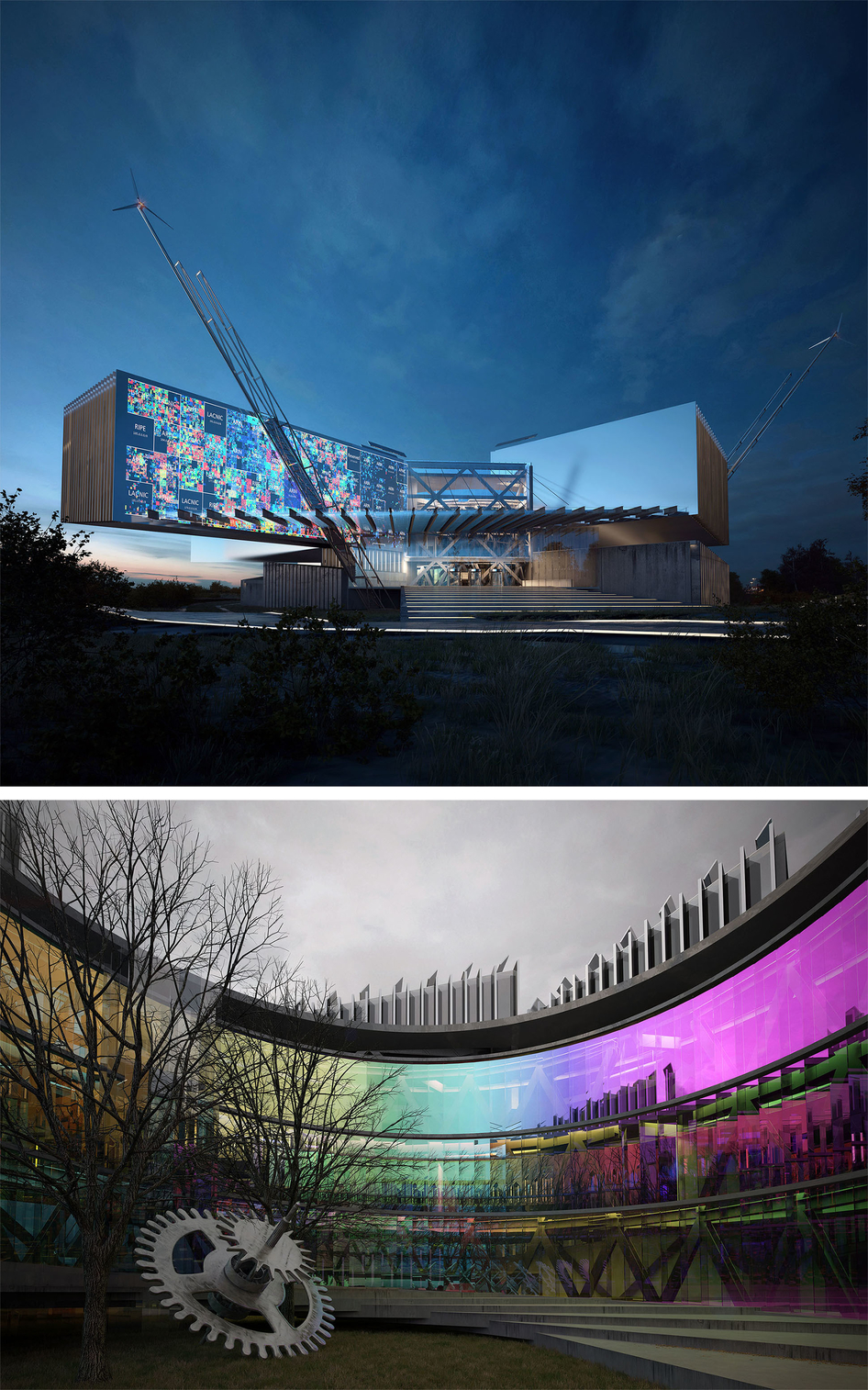 Атмосфера сталкера и постапокалипсиса. Не знаю насколько это уместно к данной архитектуре, думаю никак. Мне кажется нужно показывать более радужно.