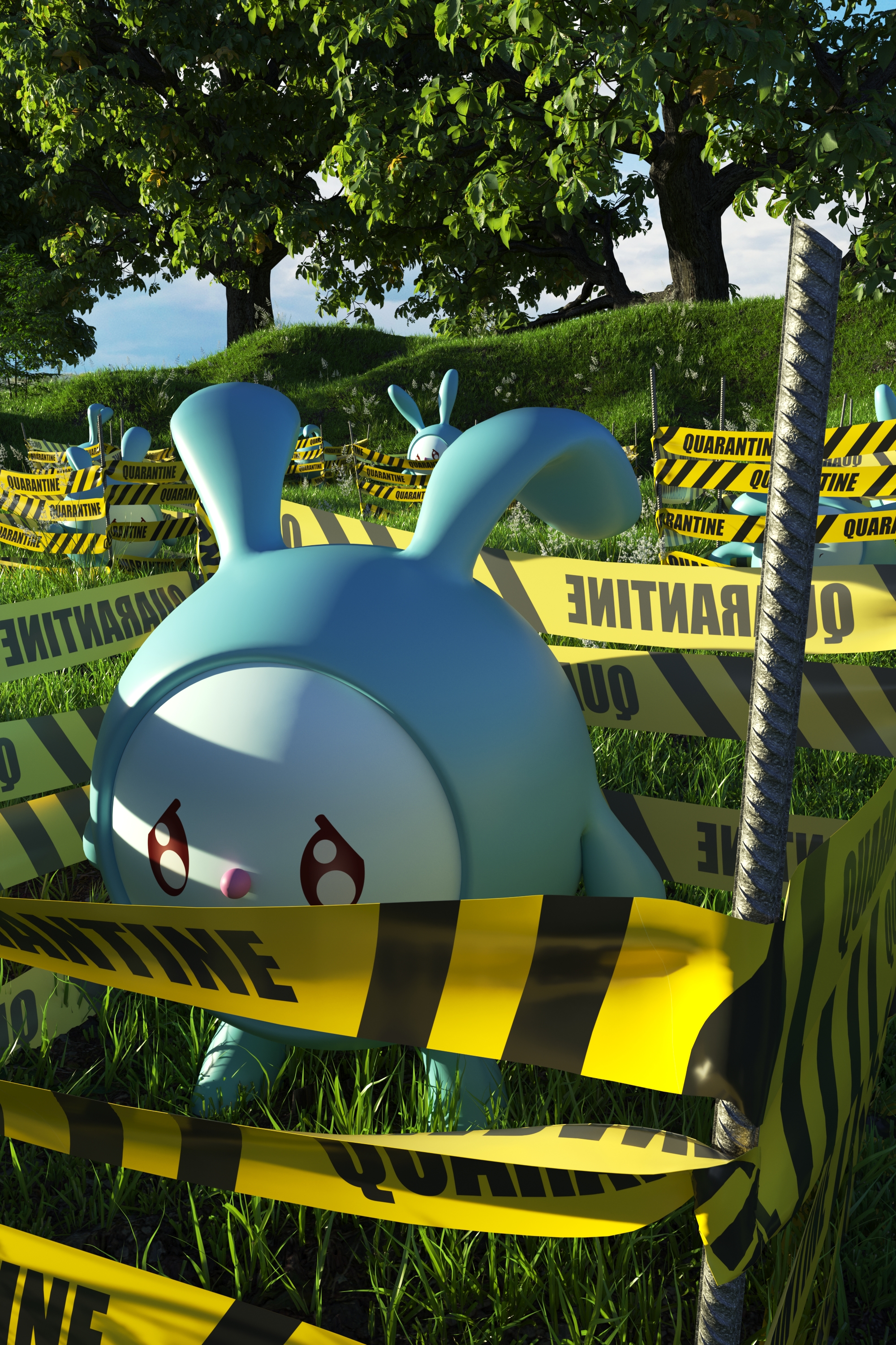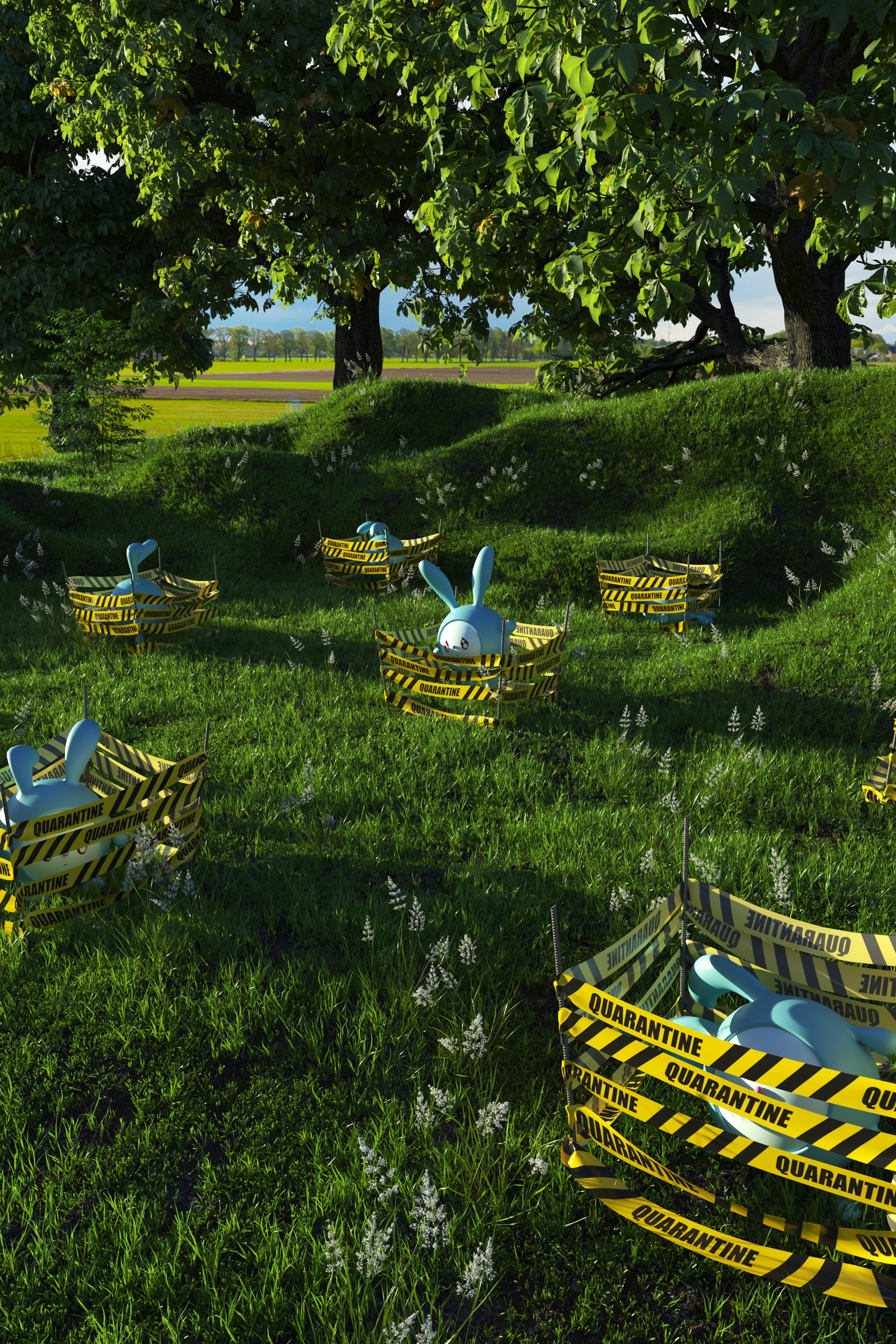 Мне кажется здесь отсылка к Пасхальным кроликам.. Это же все таки большое и семейное мероприятие, где все сходятся в большие компании и собирают пасхальные яйца, встречают весну и пасху. Но в связи с карантином, все кролики сидят по домам и могут только из далека друг другу махать лапками