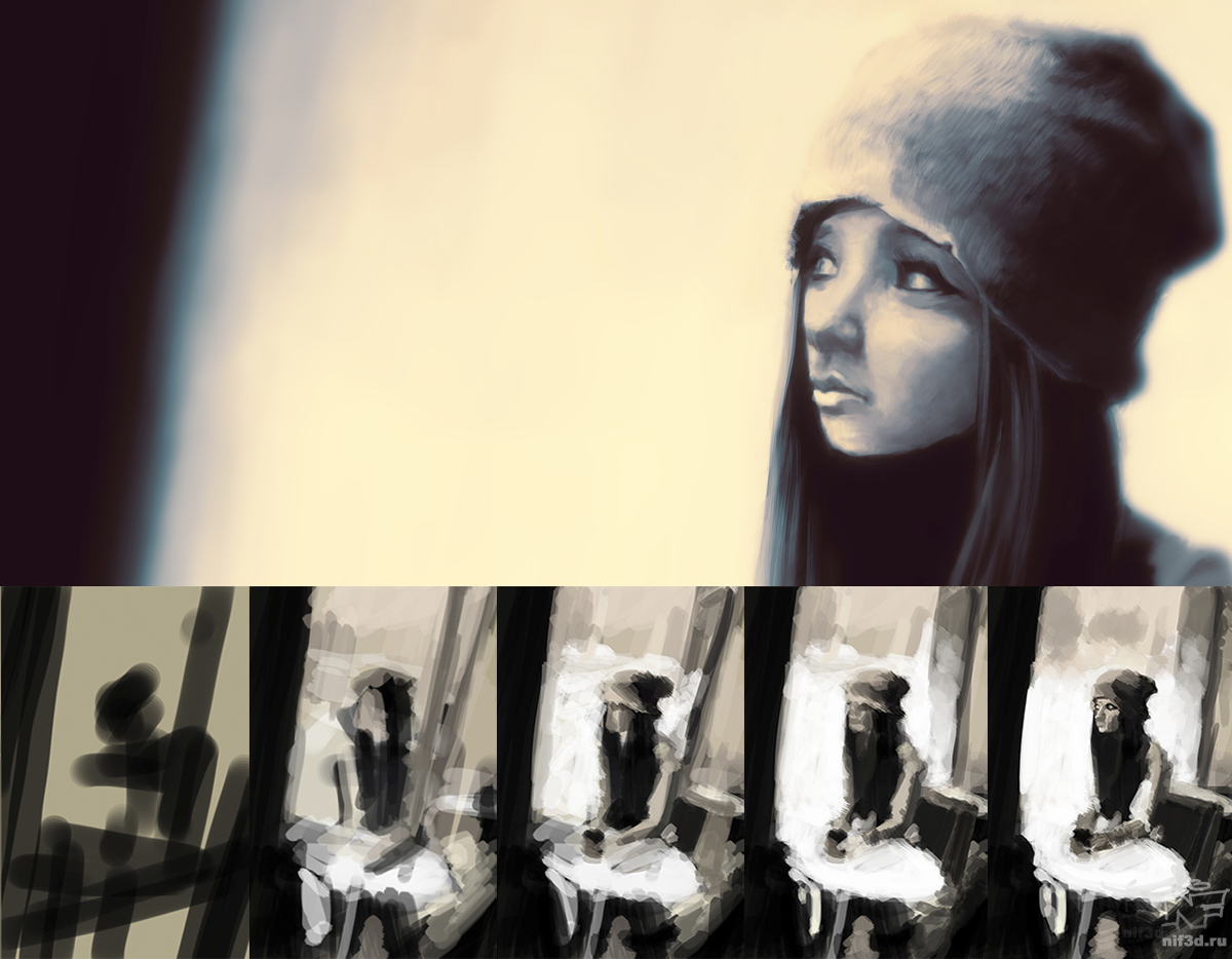 нижняя губа слишком пересвечена, думаю интереснее бы было немного погасить пересветы на лице и "зажечь" глаза, но это работа творческая так что тут на вкус и цвет ................