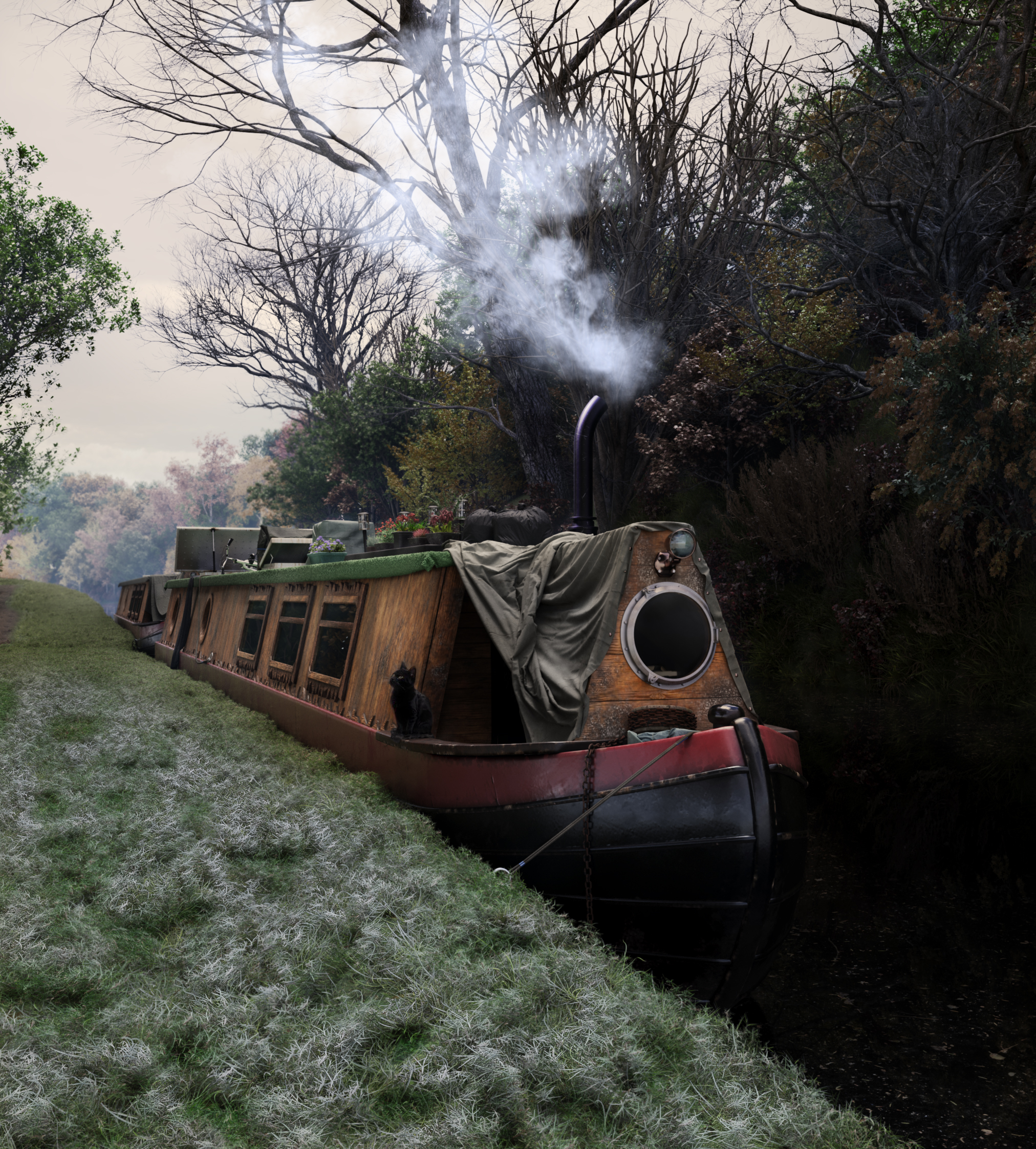 Изначально использовалась Замечательная моделька кота Фёдора c 3ddd (отмечен биркой), но не хватило навыков по работе с модификатором и шейдером шерсти для получения более реалистичного результата. Кот на финальном рендере был улучшен stable diffusion.