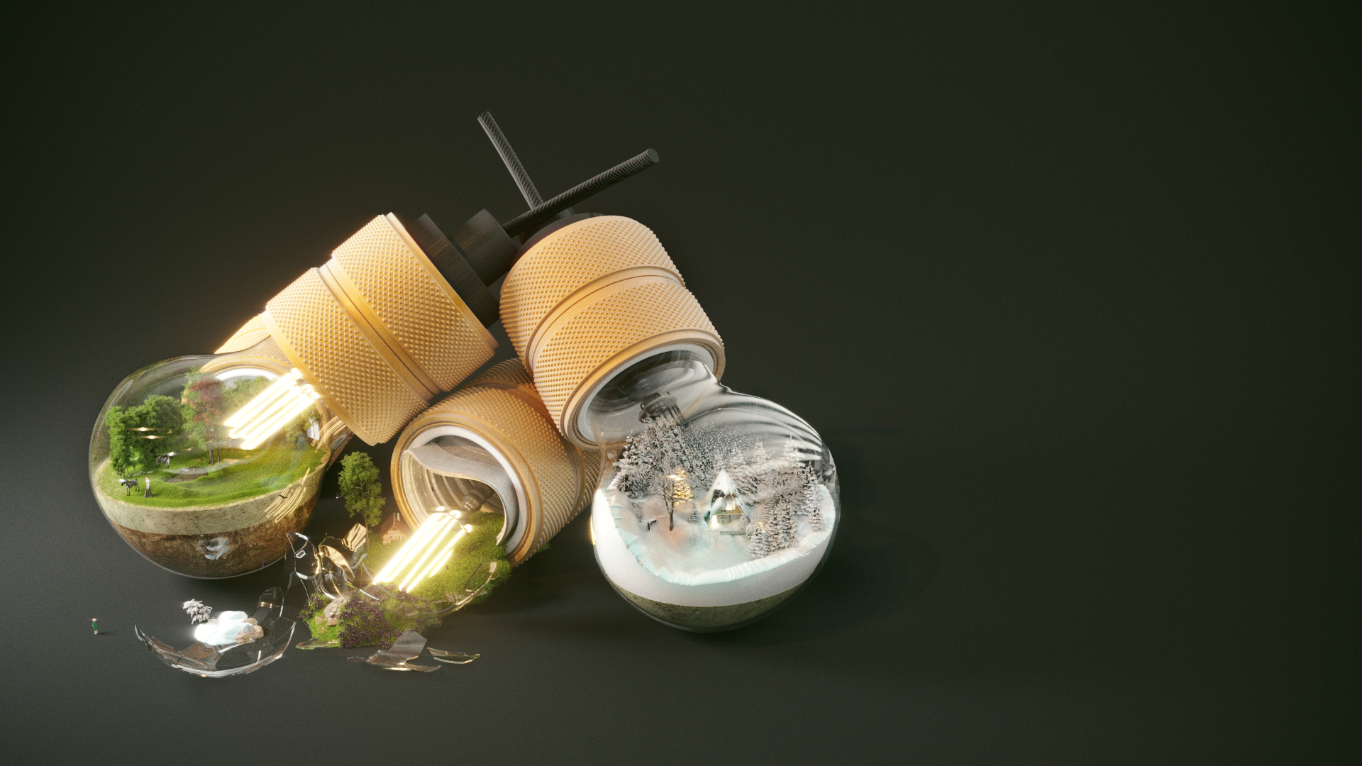 А как же весна и осень? И свет в зиме не горит, там можно было сделать холодное, "зимнее" освещение. И тут не совсем понятно, что происходит. Надо развивать идею, сейчас совсем не дурно)