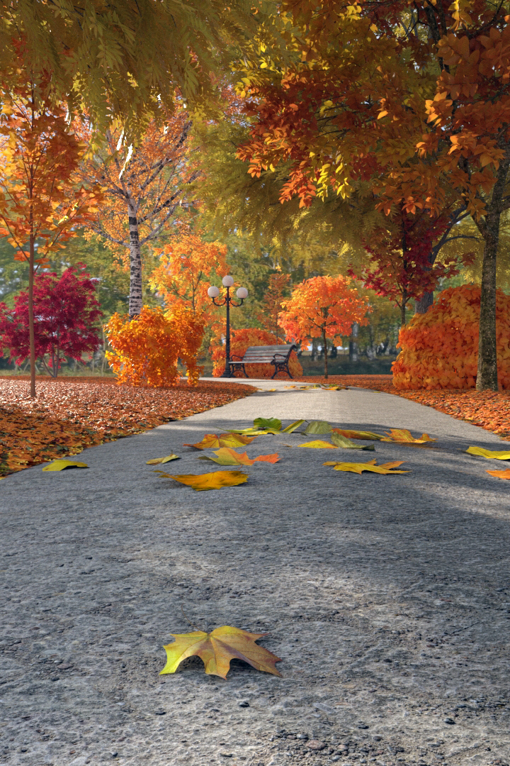 Листвы что на деревьях что на земле куча как то не логично и на 2 ракурсе листья явно слишком большие так еще и за асфальтированные