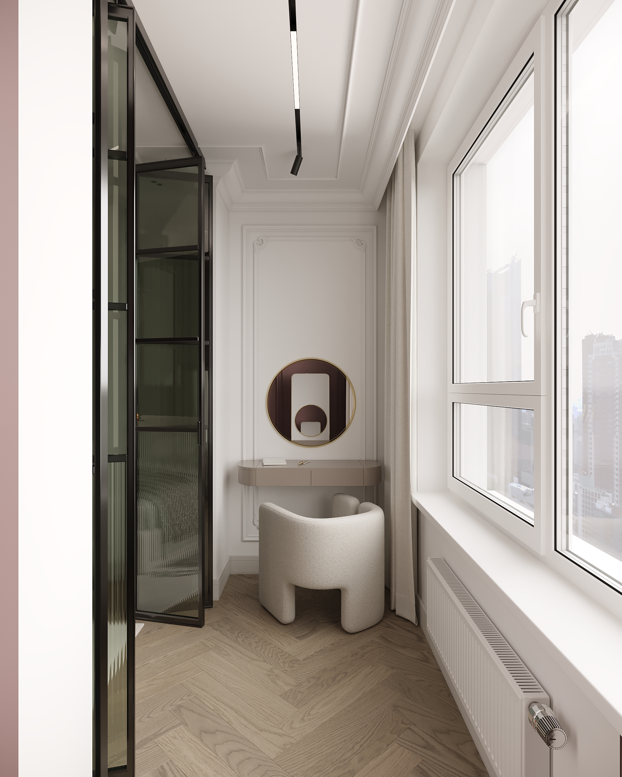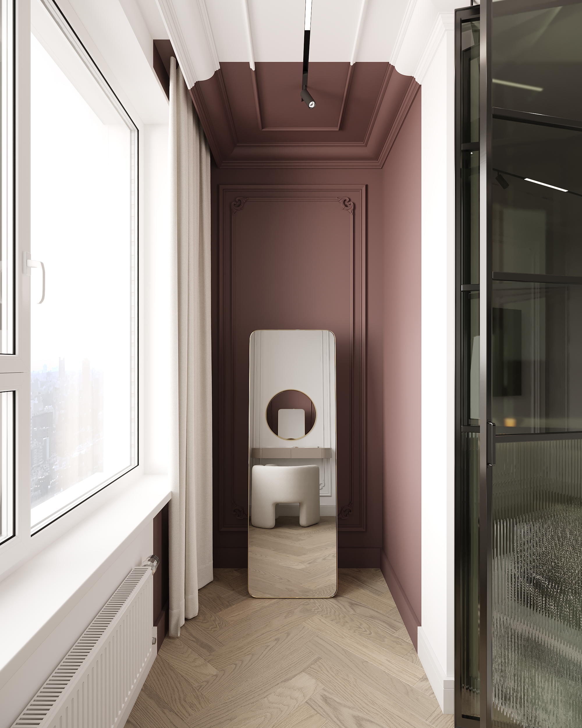Интерьер спальни в стиле неоклассика с выразительными красными акцентами. Сочетание благородных оттенков, симметрии и изящных деталей создаёт атмосферу уюта, элегантности и спокойного люкса. Проект выполнен с акцентом на гармонию цвета, текстур и освещения.