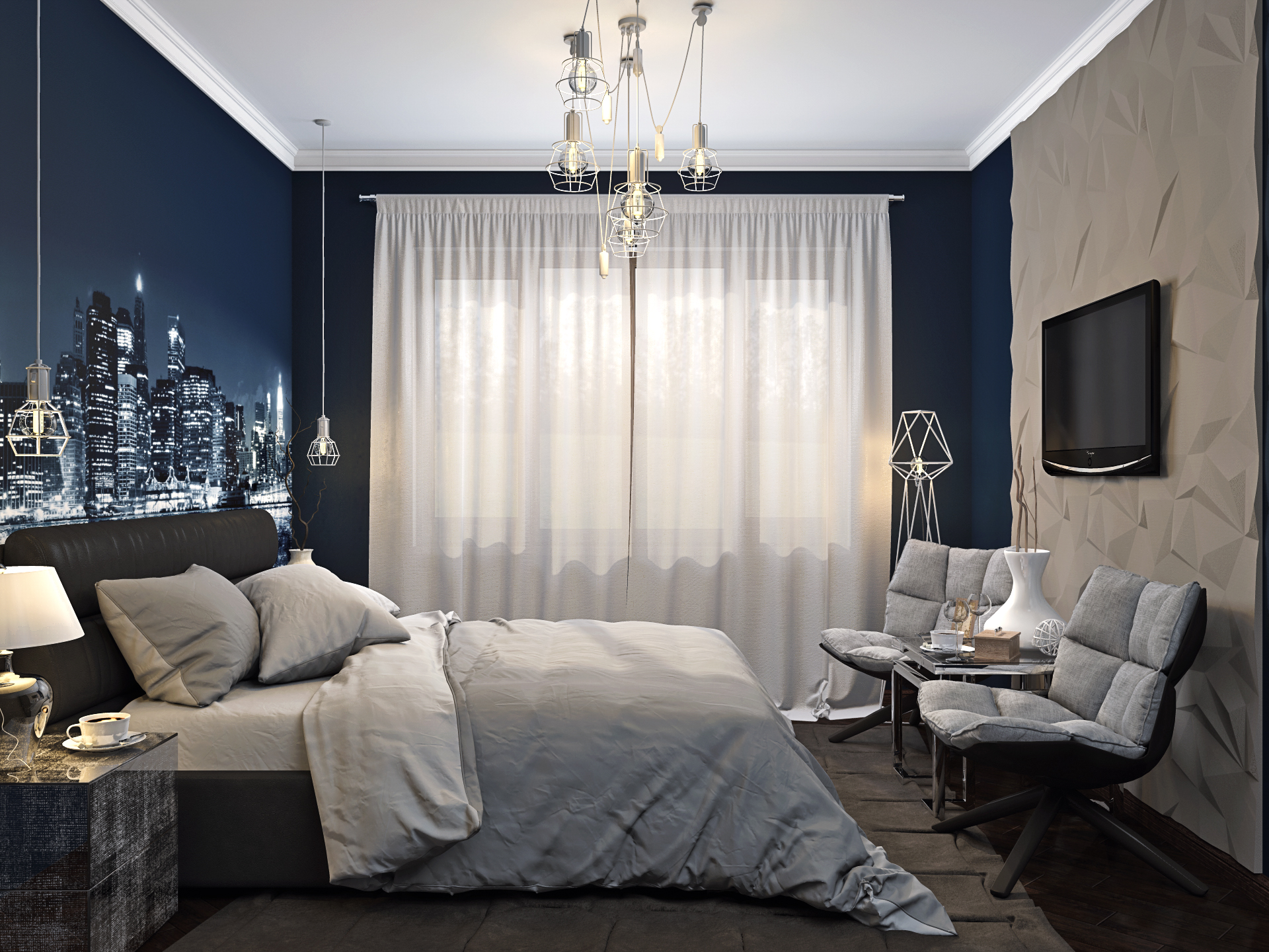 симпотная какая спаленька получилась. Я бы только для шторы сделала подшторник и поняла штору повыше. Сменила бы эти дешевые двери и конструкцию у входа. Корявая какая то не модная. Ну и стенку декоративную всетаки лучше смонтировать не выпуклой, а края слегка скрыть гкл.