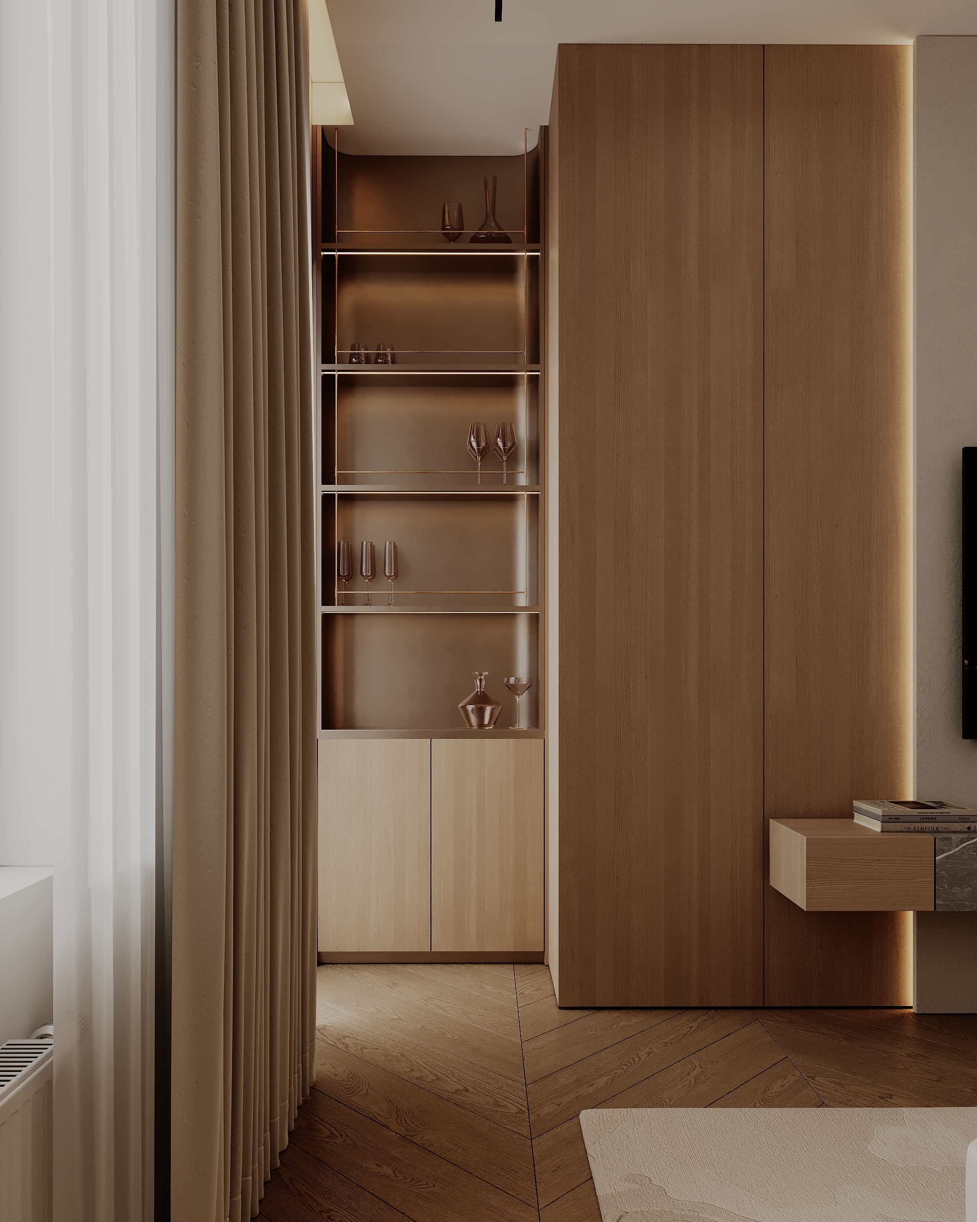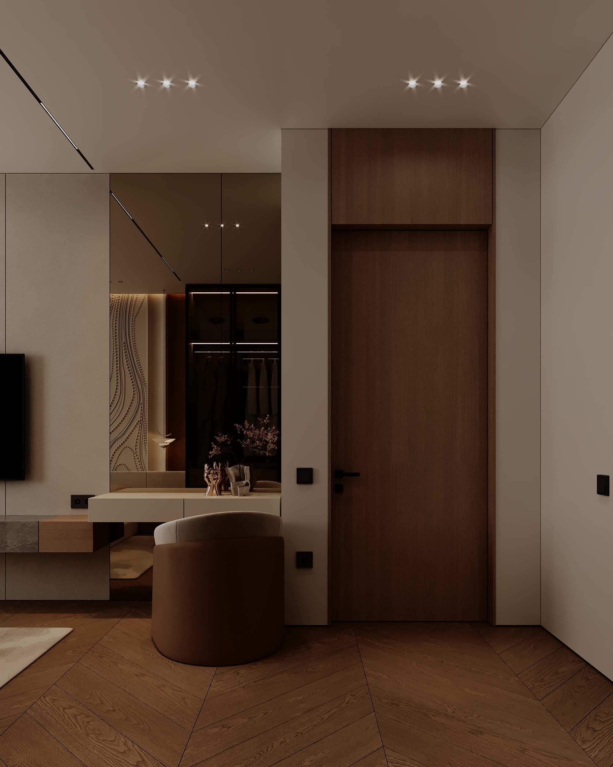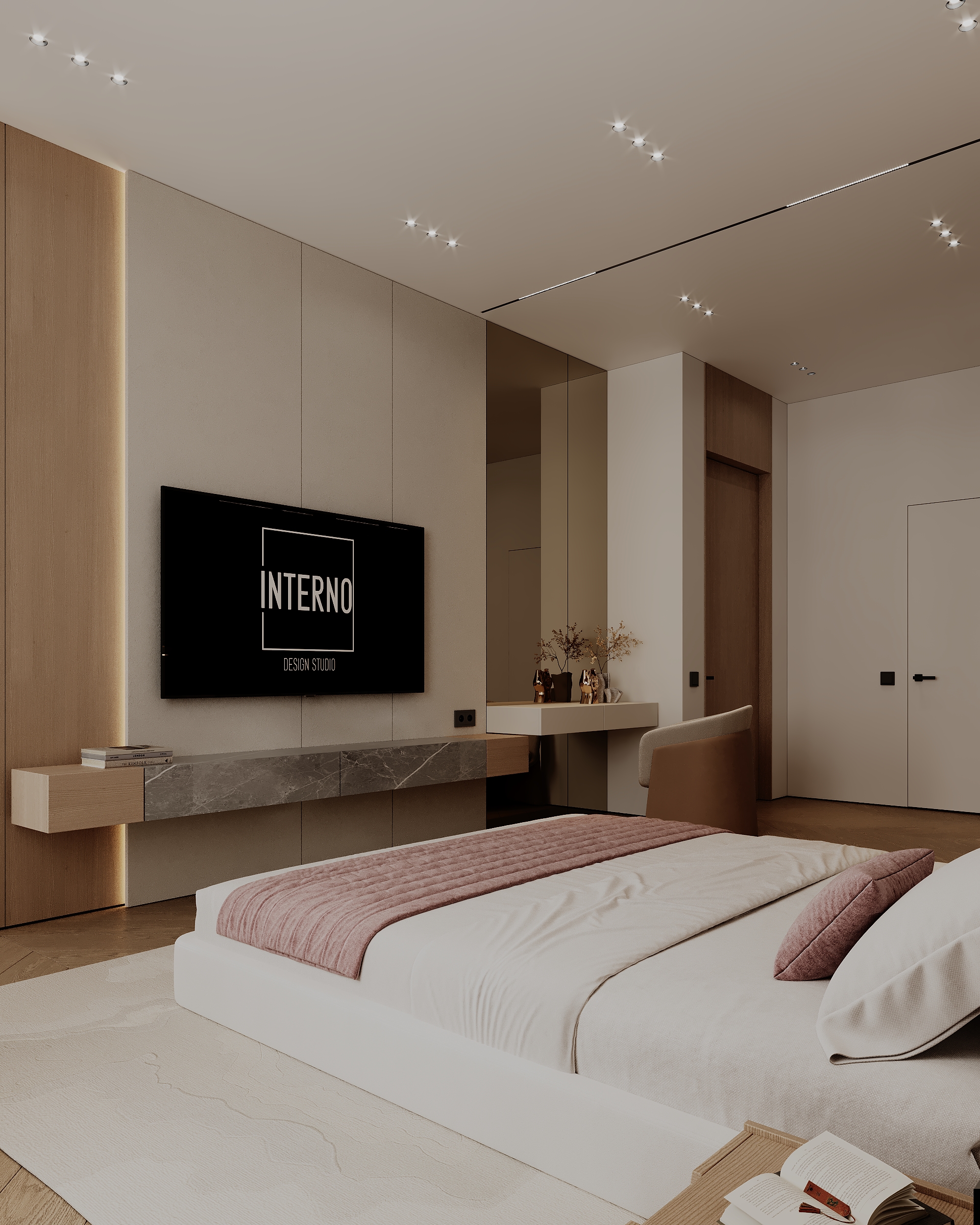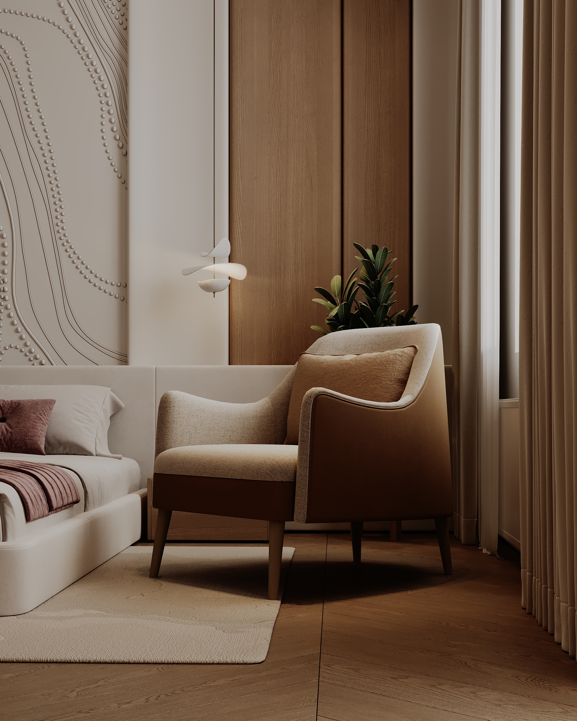 Представляем новый проект — современный дизайн спальни, где гармония достигается за счет сочетания минималистичных форм и богатых текстур