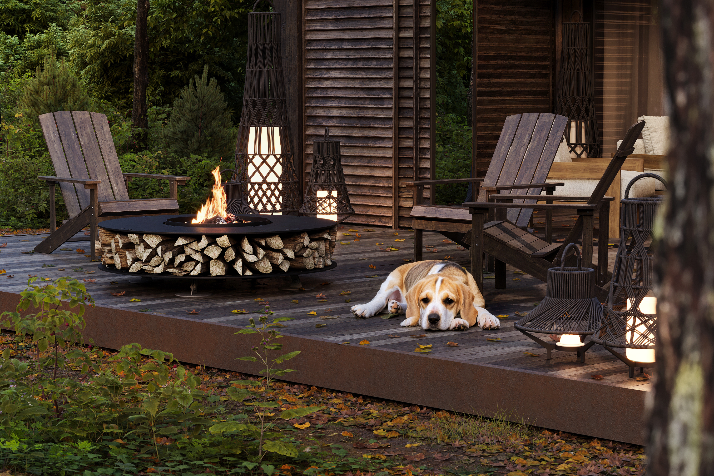 Ну никак не Одиночество. Пёсик точно не даст это почувствовать) А тут ещё и у костра на несколько персон кресла. Работа отличная!