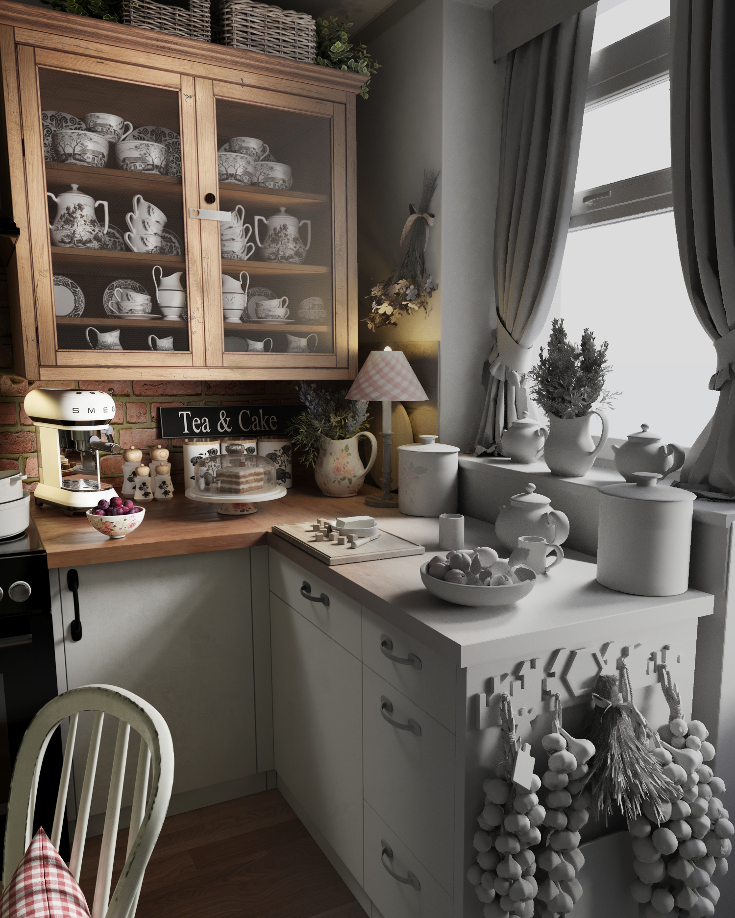 красиво, только вот посуда смотрится не естественно, много повторяющихся предметов, в жизни так не будет