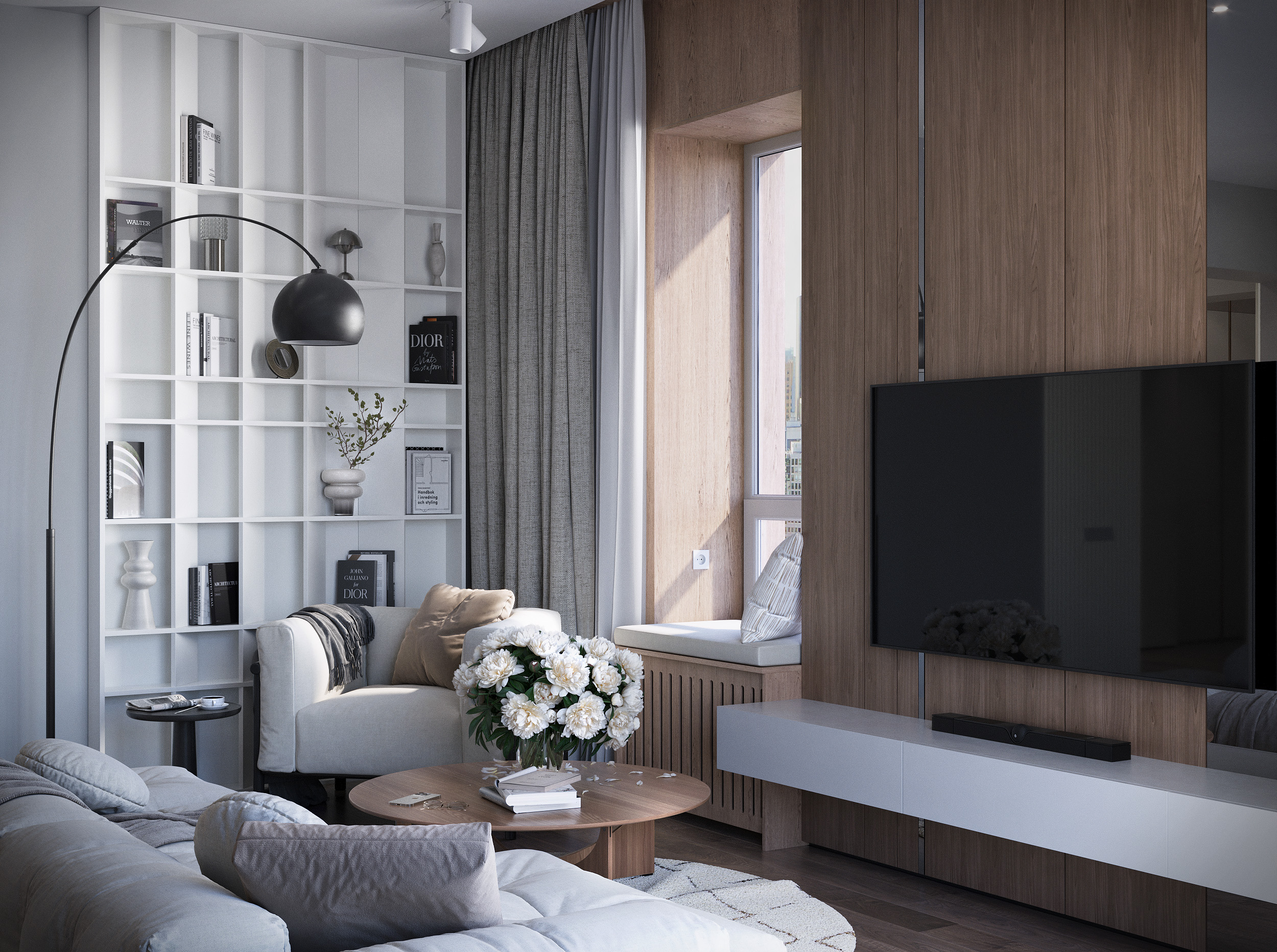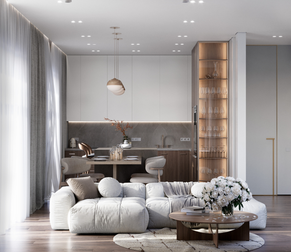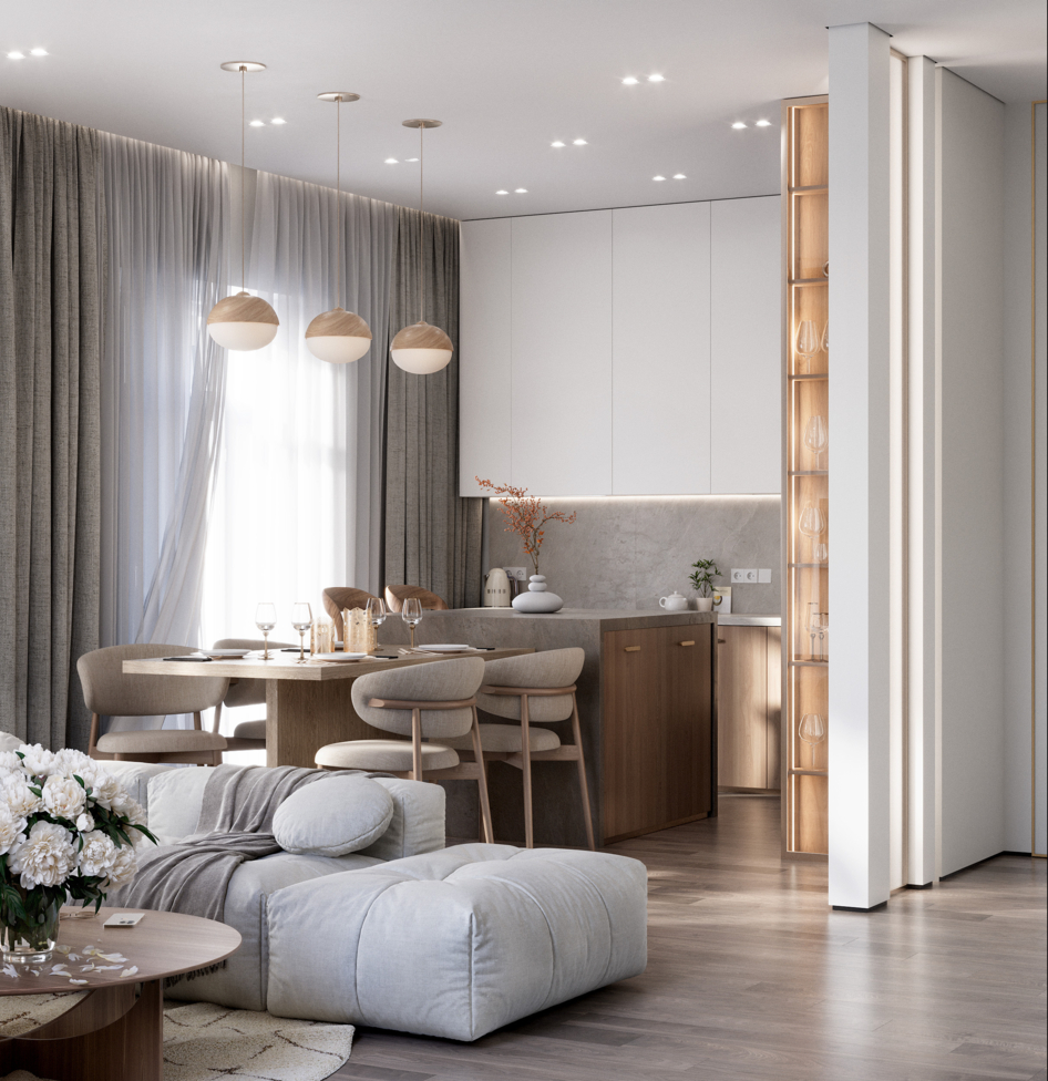 Просто уютная гостиная в солнечных лучах в одном из моих проектов. В проекте преобладают теплые материалы дерева, теплые спокойные цвета, все тяготеет к свету и натуральности. В проекте использовался следующий софт: 3dsmax, CoronaRenderer, Photoshop.