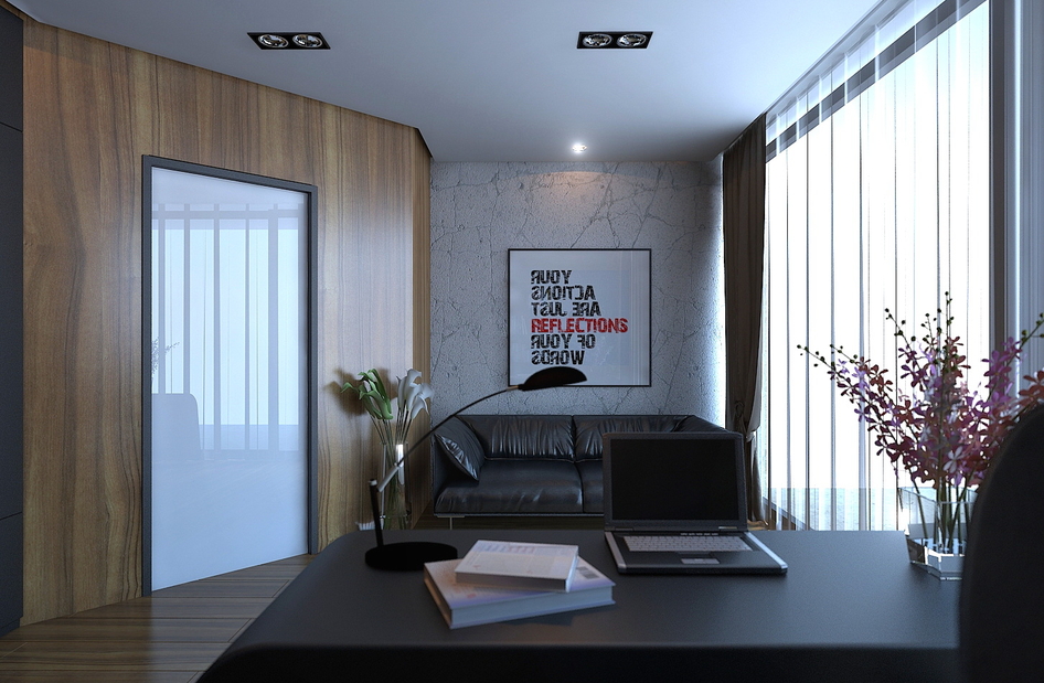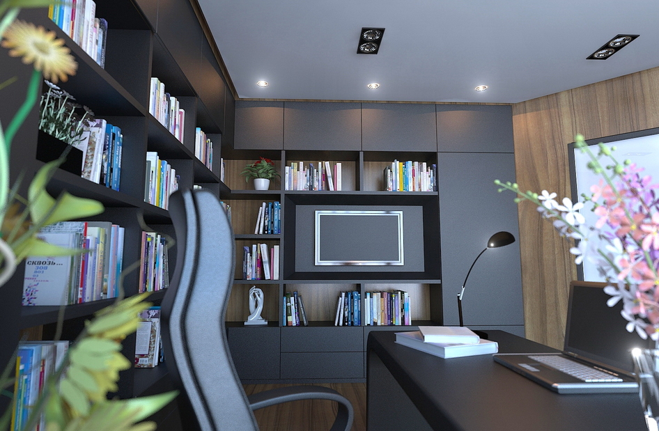 Не, не модерн. Не комильфо вообще. Калы мутанты, ветки стоят колом, а вот там, в полке телевизор замурованный? Что на окнах в свете модерна? Между дверью и полом нет и просвета. Нужно было оставить просвет, или порог (фи, конечно), иначе стеклянное полотно будет шаркать о пол и плохо открываться.