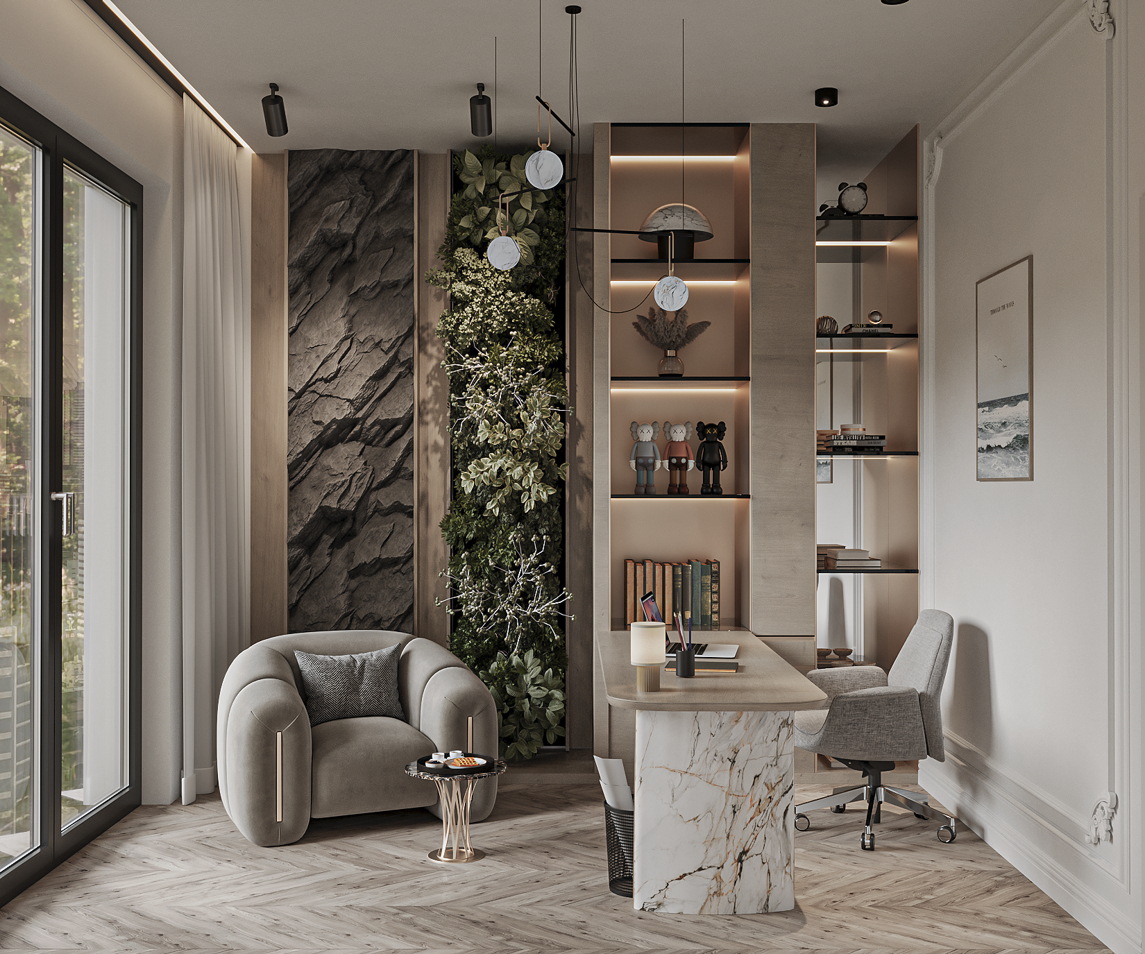 Neo classic office design. Разработав дизайн этого офиса, я был одержим насыщенностью и создаваемым ею цветом. Вам не кажется, что атмосфера слишком серая?
