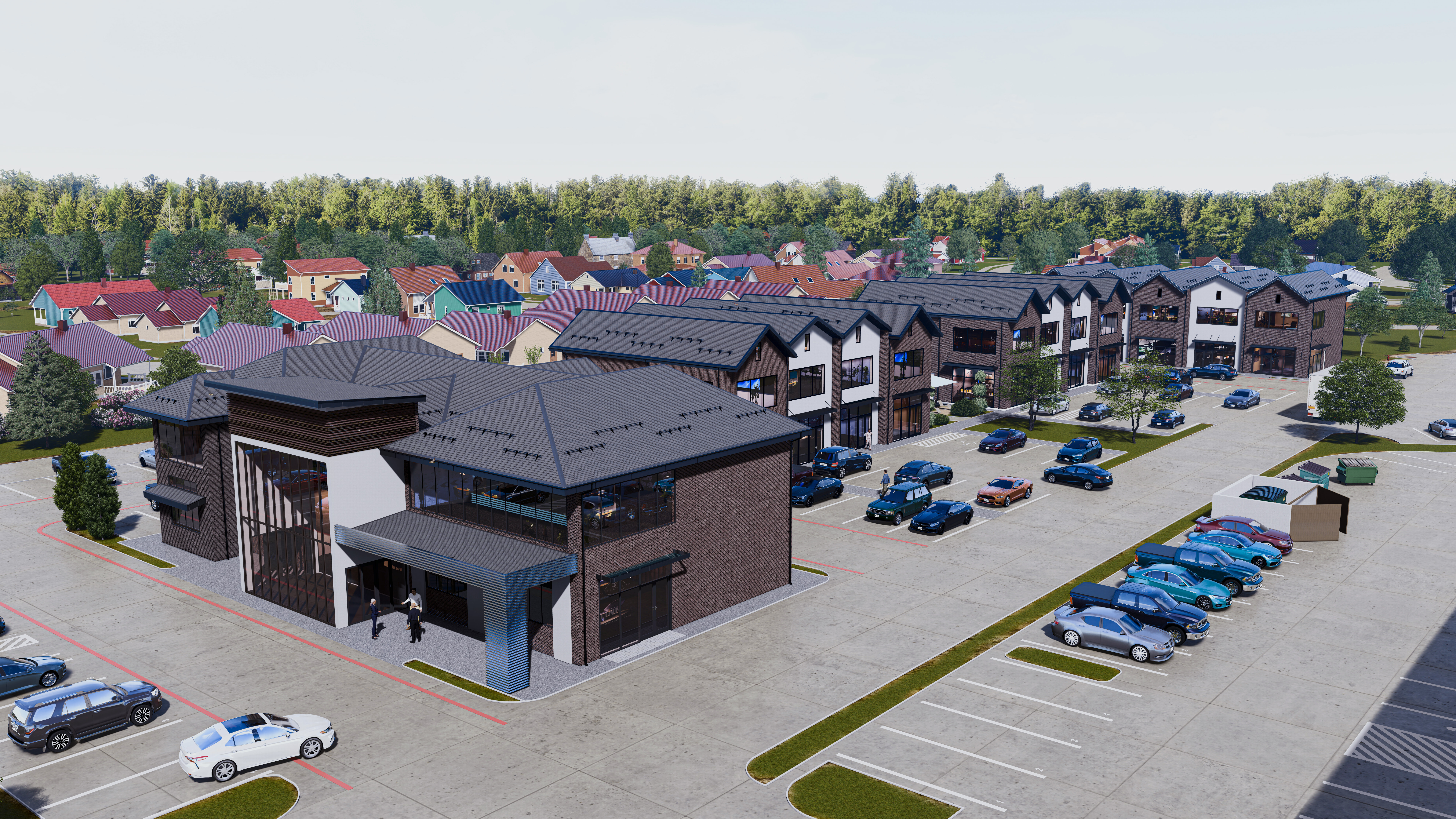 Перезалив с исправлениями и доработкой. 1) Проработаны детали объектов 2)Добавлены кластеры в окнах 3)Текстуры, заменил текстуру кирпича. 4)Изменены ракурсы камер Место положение участка: Флауэр Маунд, Техас, США Офисы в стиле Таунхаус