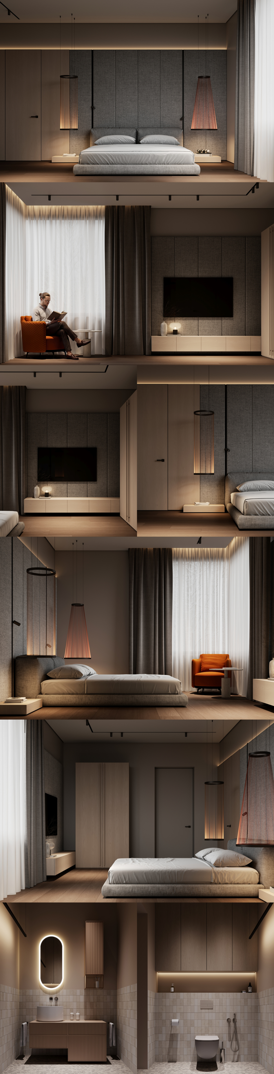 От бежевой спальни из-за декора над кроватью четкая ассоциация с кухней, так и хочется спросить - зачем поставили кровать возле плиты?