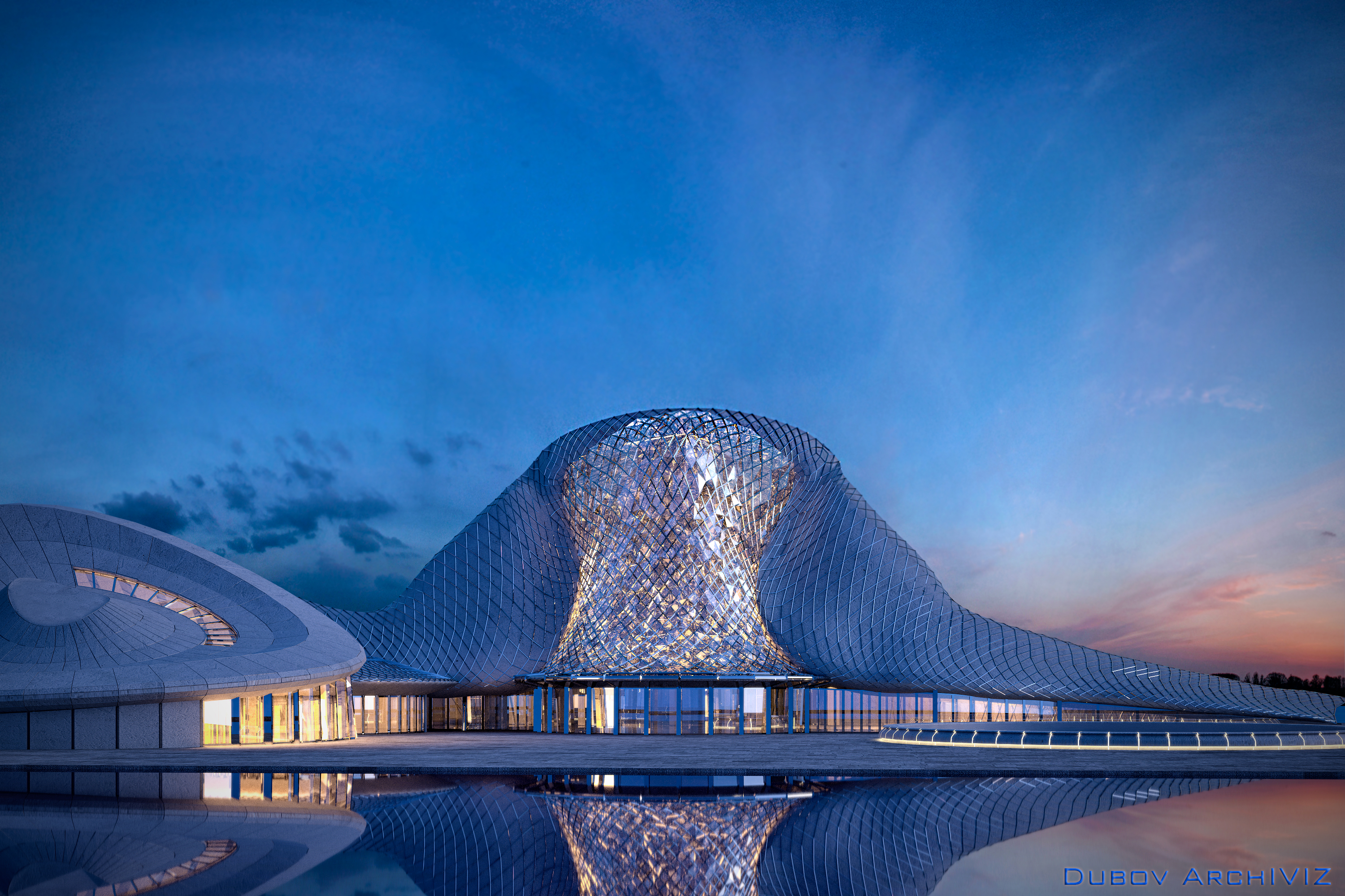 По мне так, Заху Хадид напоминает)) Ну вот, суда ни как, не понятно изломанное стекло, создается эффект блесток, брильянтовое колье, что-то такое. Нет излом сюда никак.