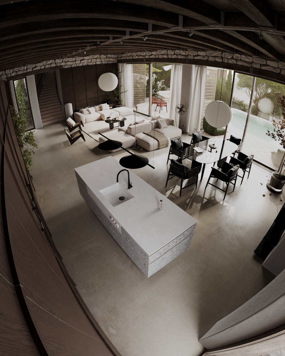 Минималистичный дизайн мебели SIORI в аутентичной атмосфере. Интерьер, в котором доминируют природные материалы, служит идеальным фоном, подчеркивая чистоту линий и выразительный характер бренда.