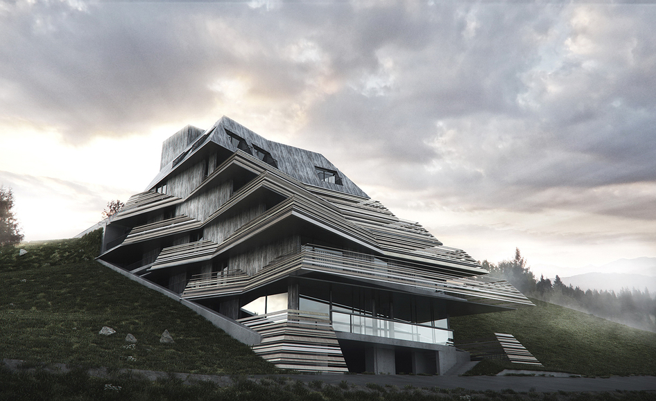 #visualization #cgi #render #archviz #c4d #cinema4d #vray #vrayforc4d #architecture #design #modern #contemporary #hotel #mountains #morning #dusk #atmosphere #fog