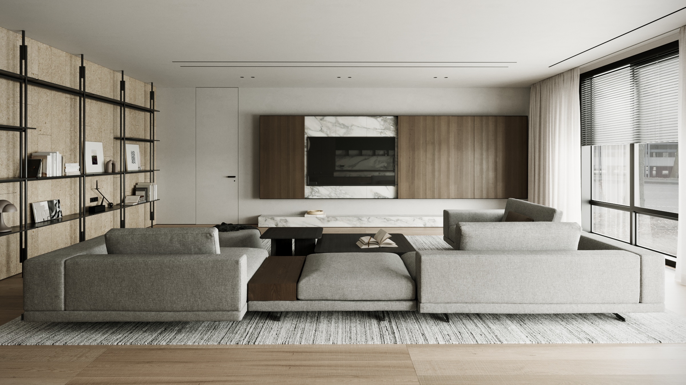 Park House Sofa: Boca Soho Pouf: Boca Pouf