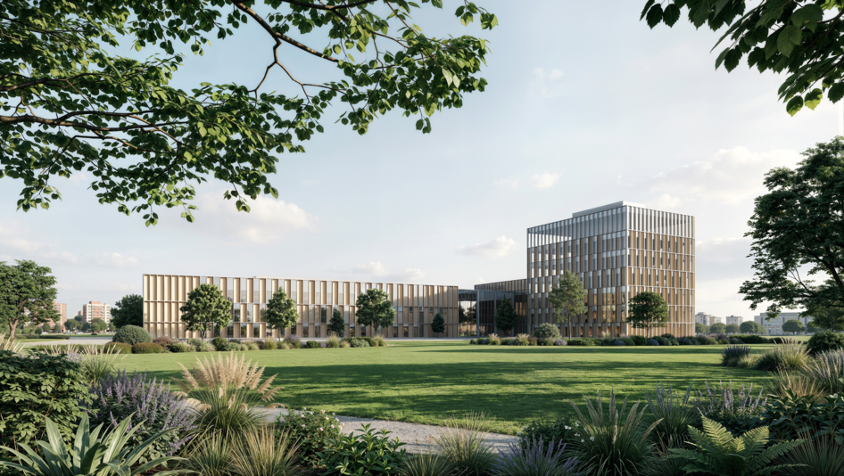 Офис рядом с парковой зоной.