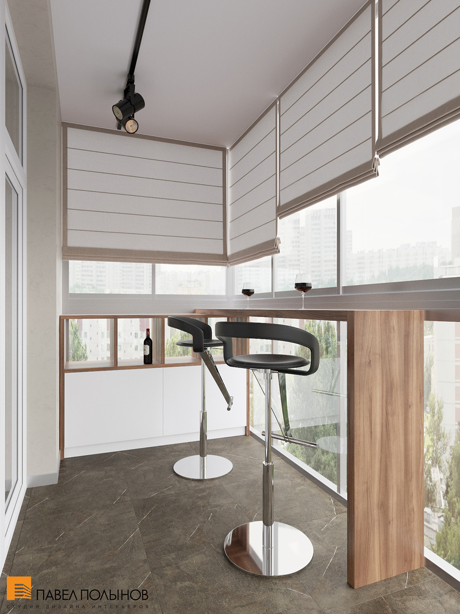 Понравился искусственный камень острова-барной и балкон.