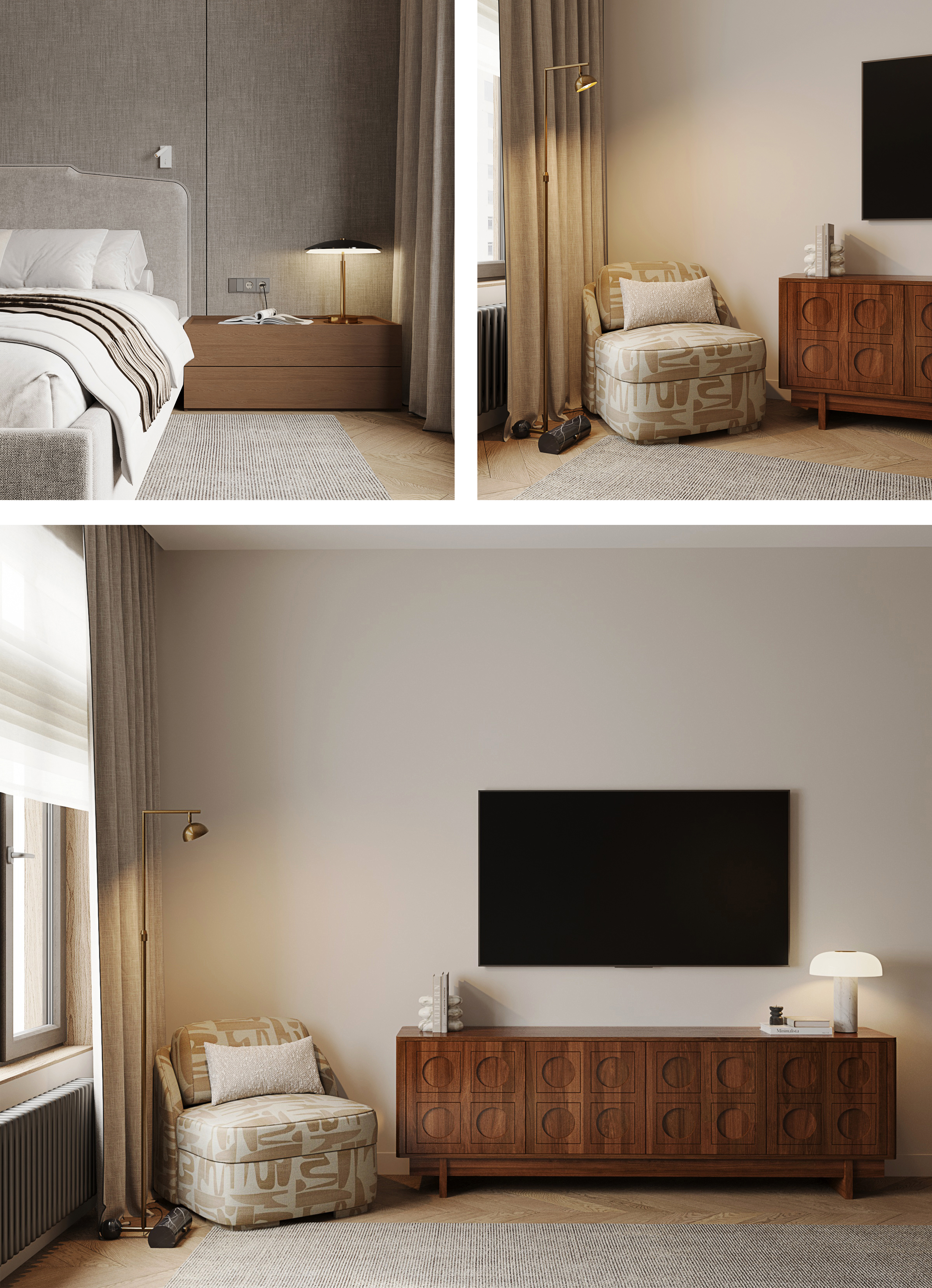 Подбор аксессуаров и декора выглядит логично и не перегружает)