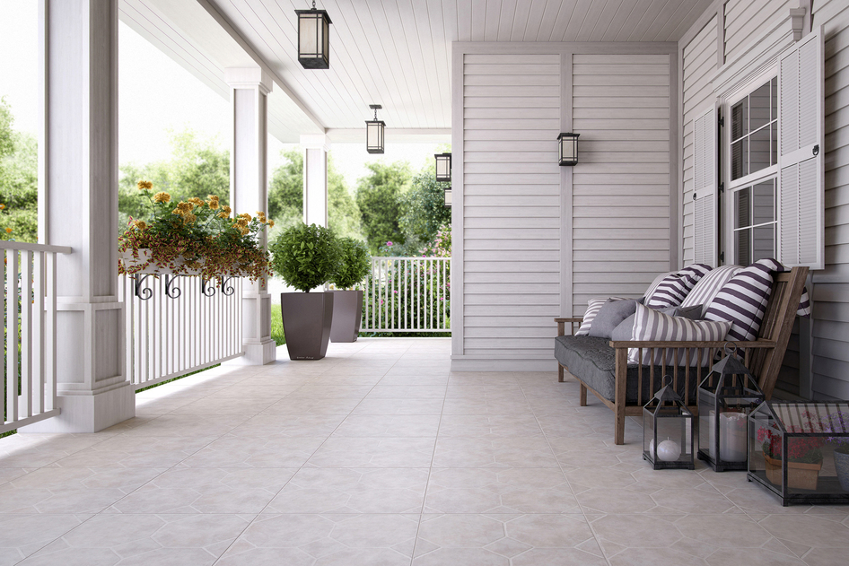 Плитку особо не разглядеть. Картинка качественная, но от кустов пар.