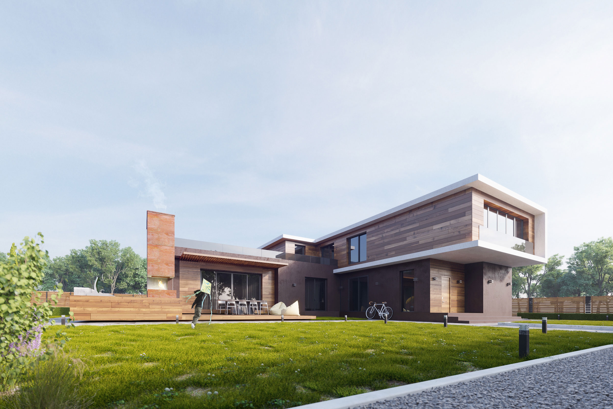 Небольшой проект частного дома, работа достаточно простая по своей сути, но интересна тем что я создавал её от первого эскиза и визуализации, до непосредственной реализации на стройке. Сейчас активно идет строительство этого дома-также делаю интерьеры и часть благоутсройства-оно к слову там очень простое, то что вы видите на картинках так и будет сделано. Всем спасибо за просмотры,за ваши комменты. Чуть больше видов и планировка есть на -