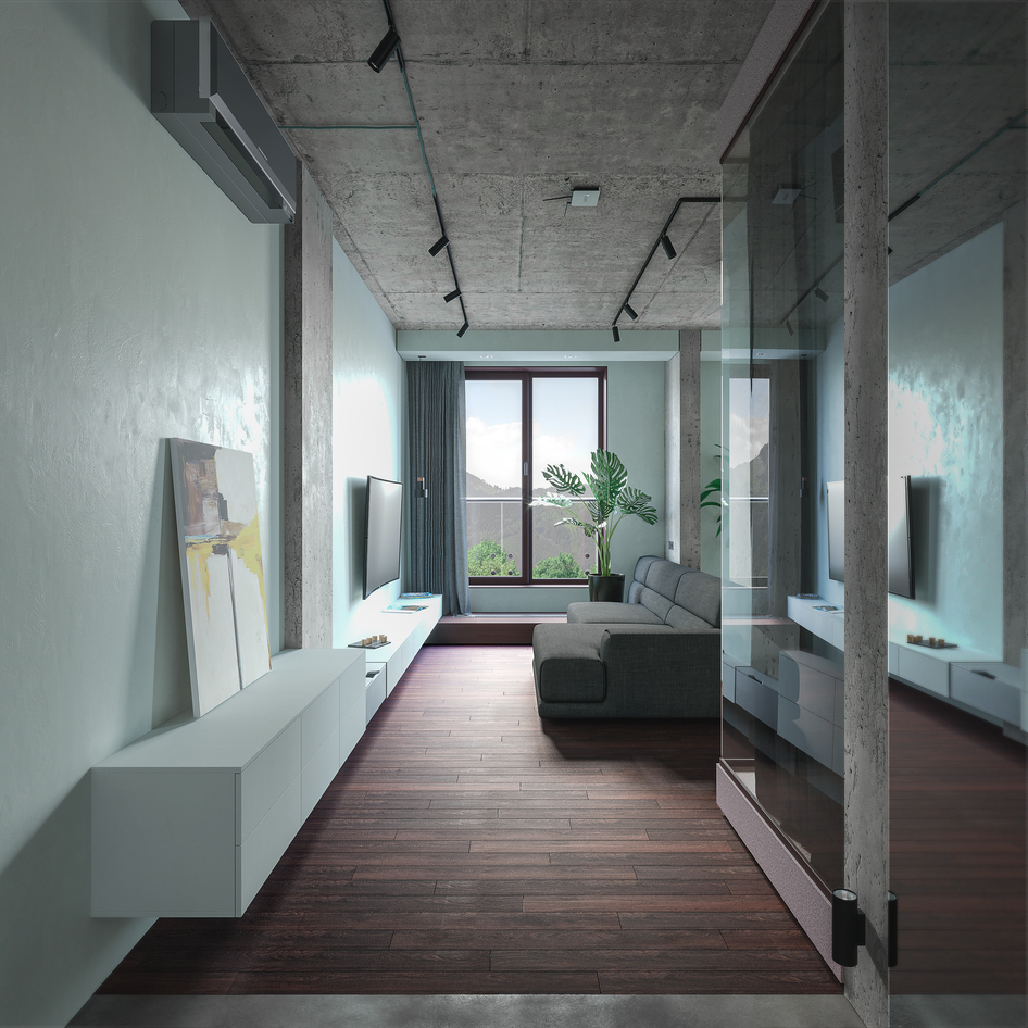 В районе телека жесткие пересветы и для портфолио можно было попривлекательней сам дизайн выбрать. Стены так покрашены, что я сразу вспомнил больницу 15 лет назад (а где-то до сих пор так), или садик, еще добавить эффект облупливания и будет прям какое-нибудь госучереждение в поселке)