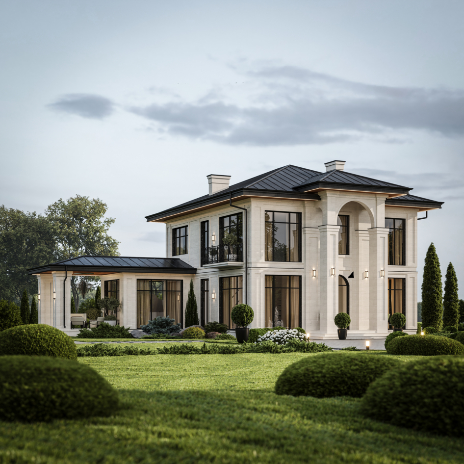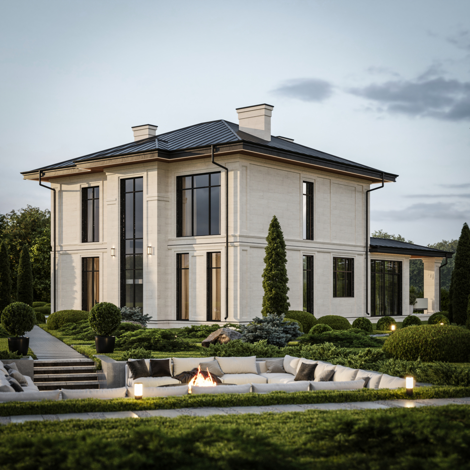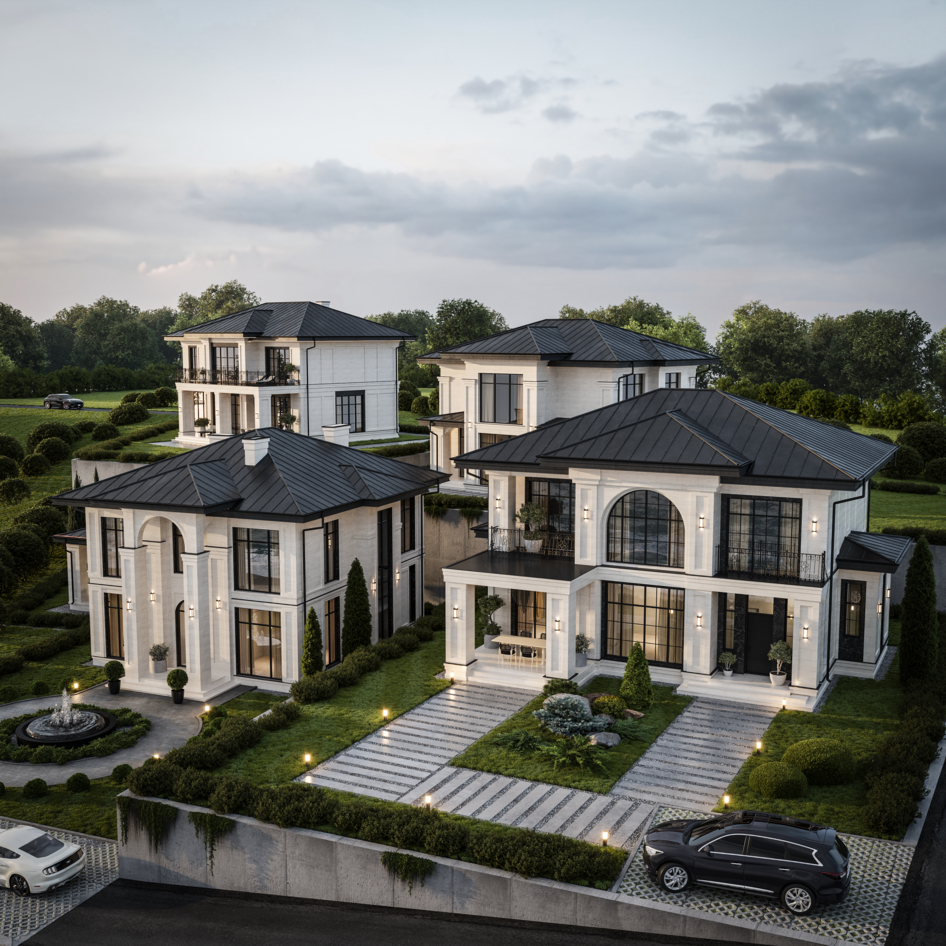 Выполнена мною 3D-визуализация поселка в Сочи по проекту Zaharov Architect без использования нейросетей