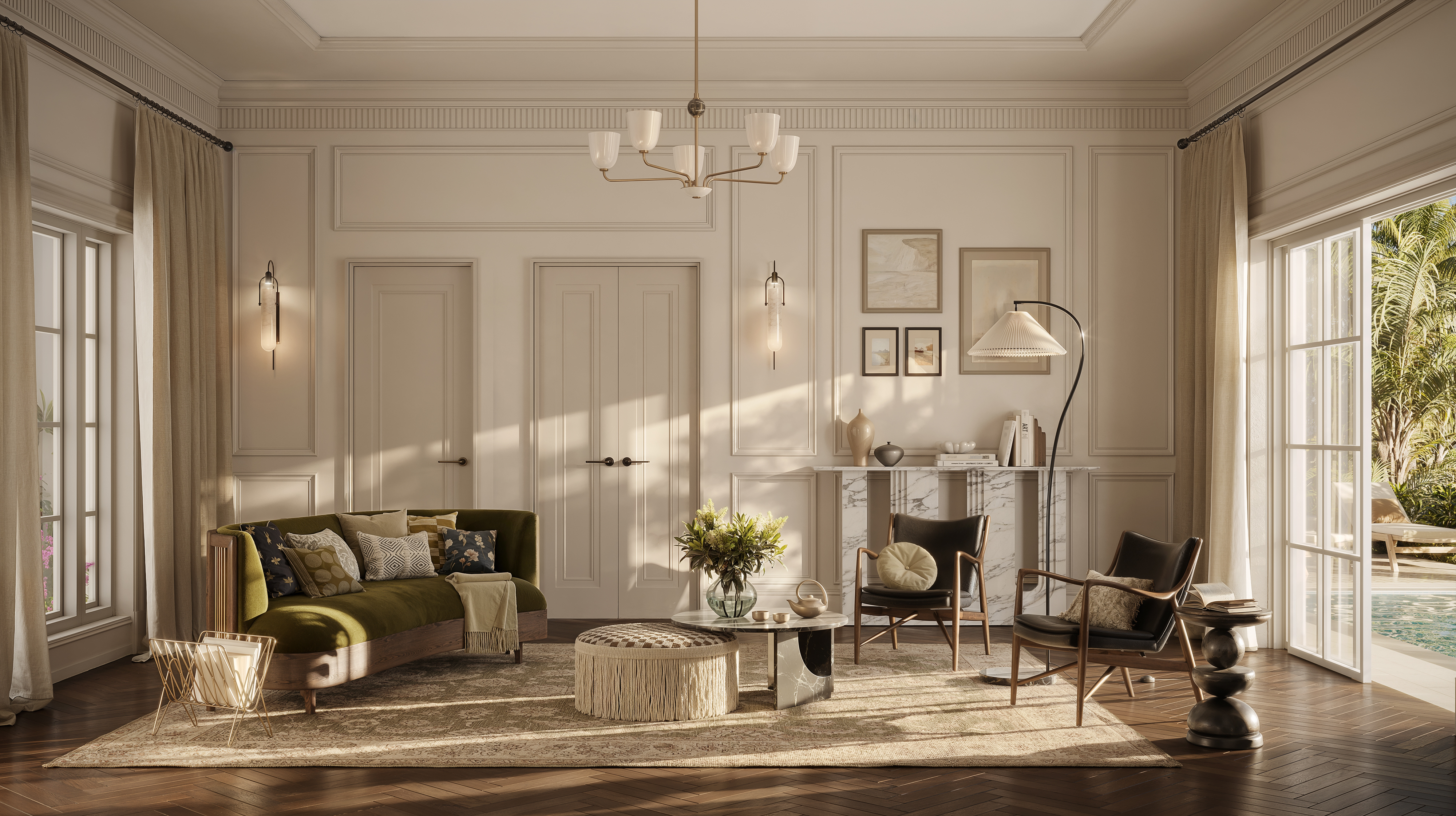 Type: Private house / Goa Design interior: VizLine Studio Visualization: VizLine Studio Project year: March 2026