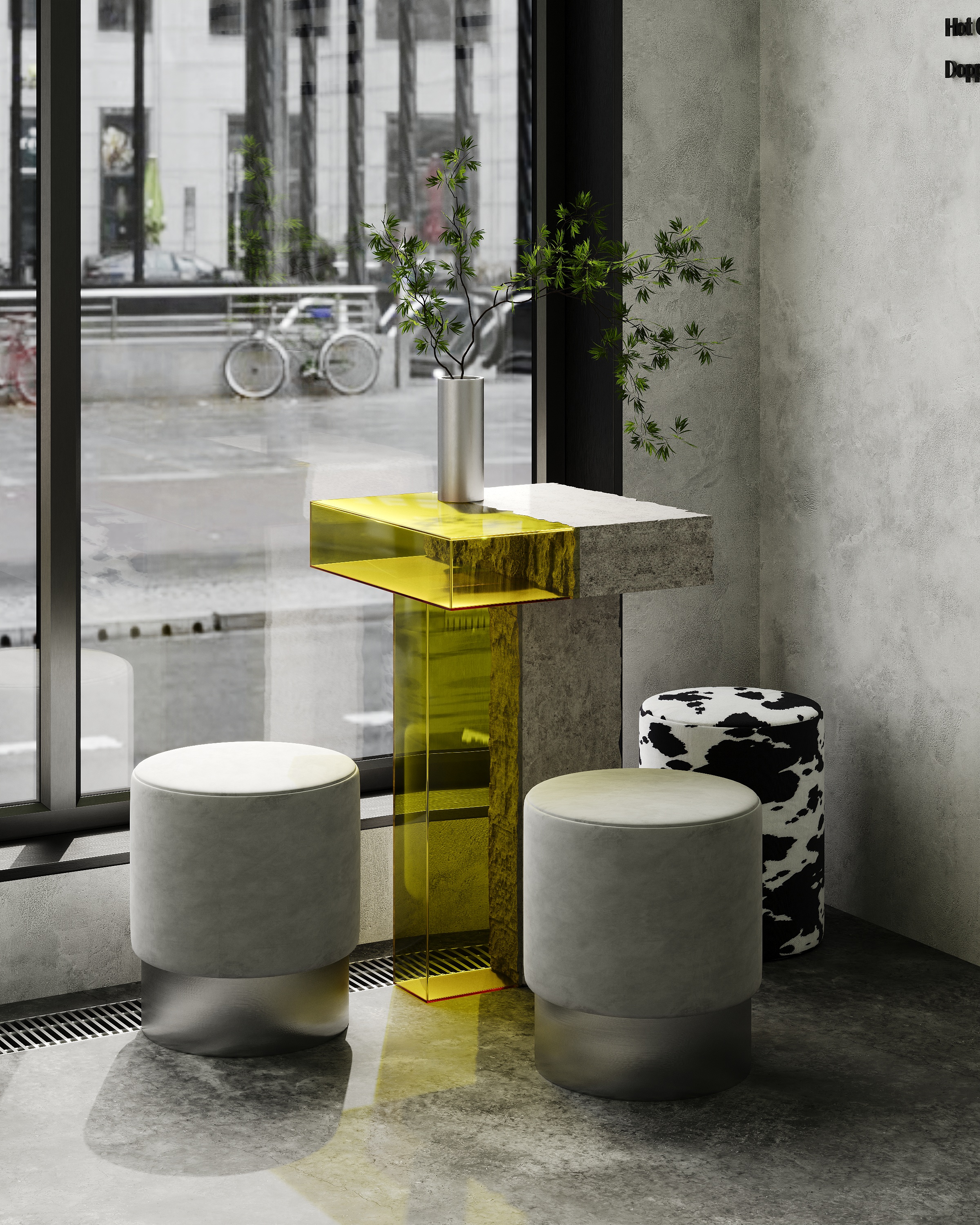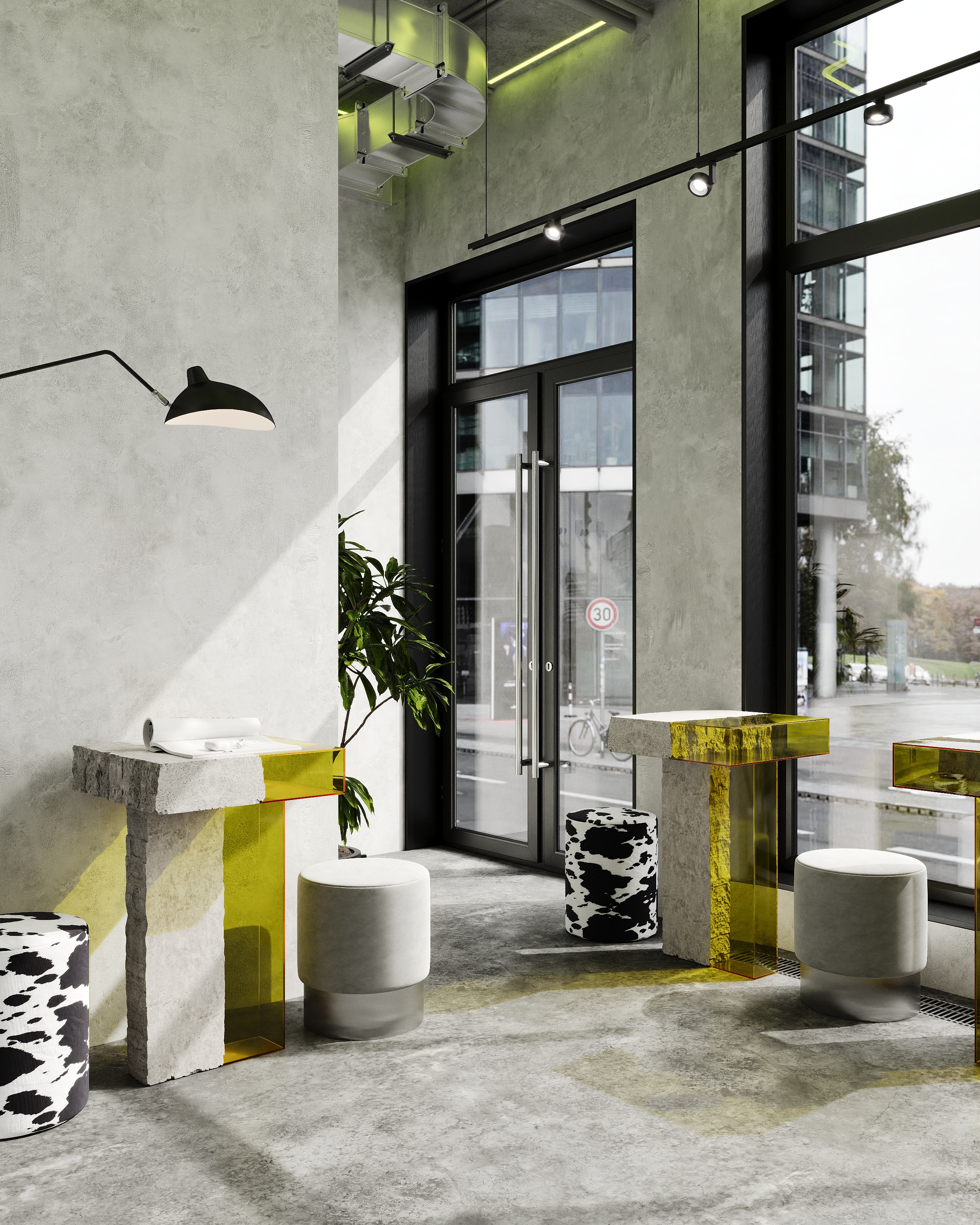 Очень не хватает bump на пуфах...мягкая мебель смотрится плохо... И объема штукатурке, если в вашей задумке это не бумажные обои с рисунком... Растения тоже не реалистичны... Но в целом работа не плохая и ракурсы красивые, и цветовая гармония хорошая