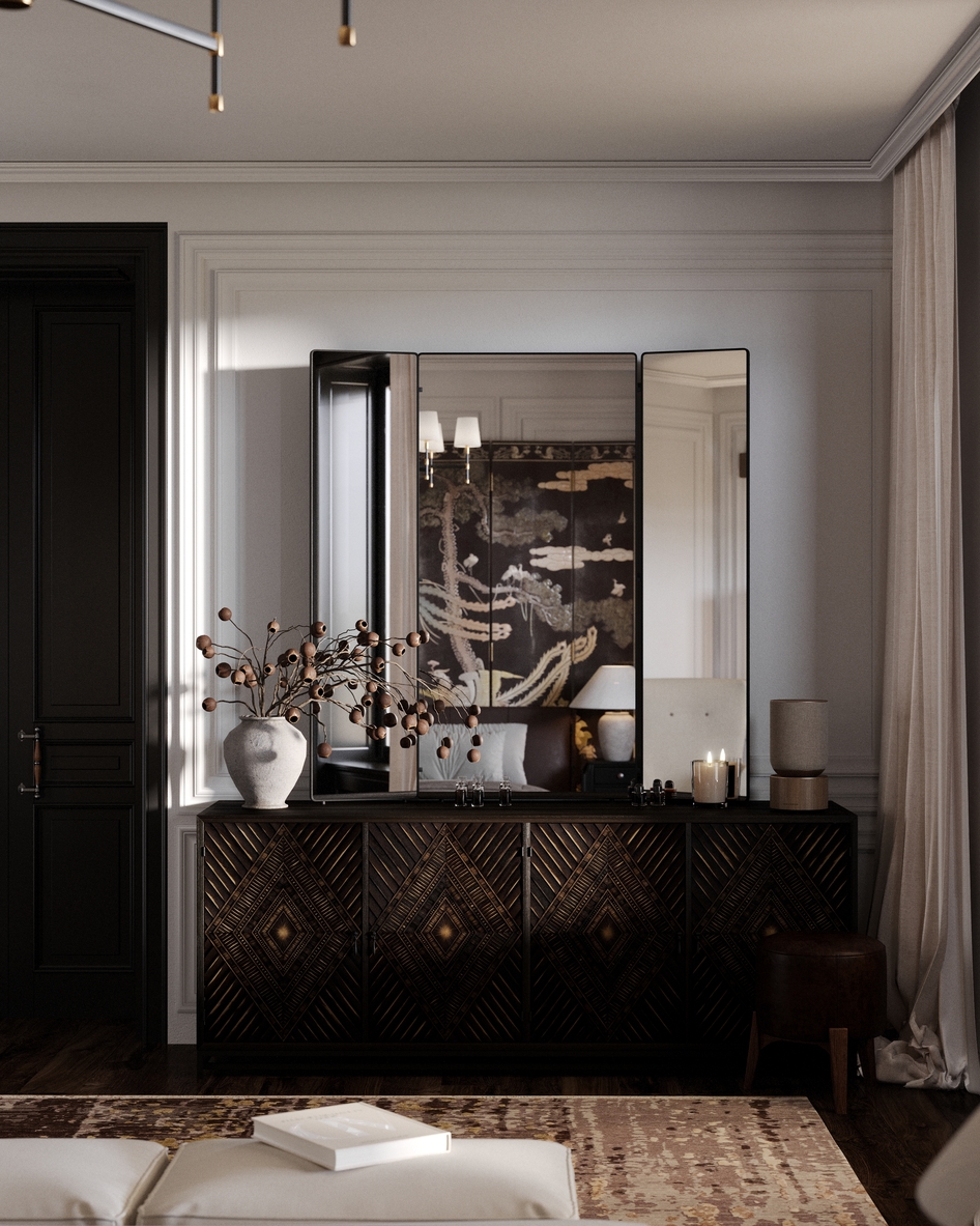 Проект спальни для квартиры в Санкт-Петербурге в неоклассике с элементами шинуазри