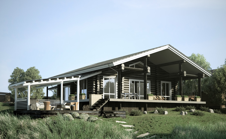 Все классно! Парочка замечаний: 1. Текстура на колоннах деревянных повернута оказалась. Ну и на торцах бревен текстура наверное другая должна быть 2. Тубы "водосточки" и желоб какого диаметра? Явно нарушен масштаб.