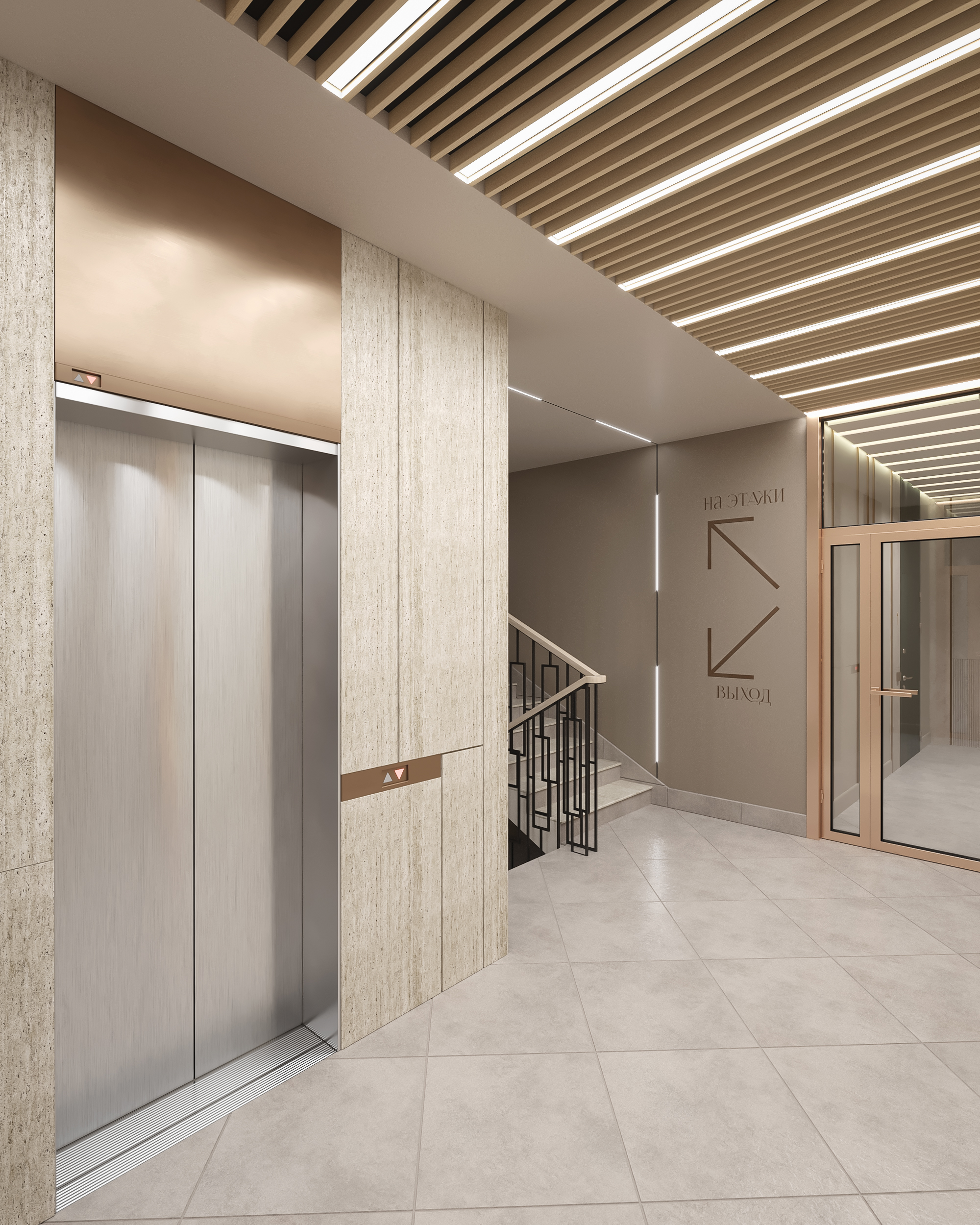 3D-visualization of Public Space Of The Residential Complex 3D Visualisation - Dementyev Ilya Design - Tatyana Gubar 3Ds Max | Corona Renderer | Adobe Photoshop | Stable Diffusion Year: 2025