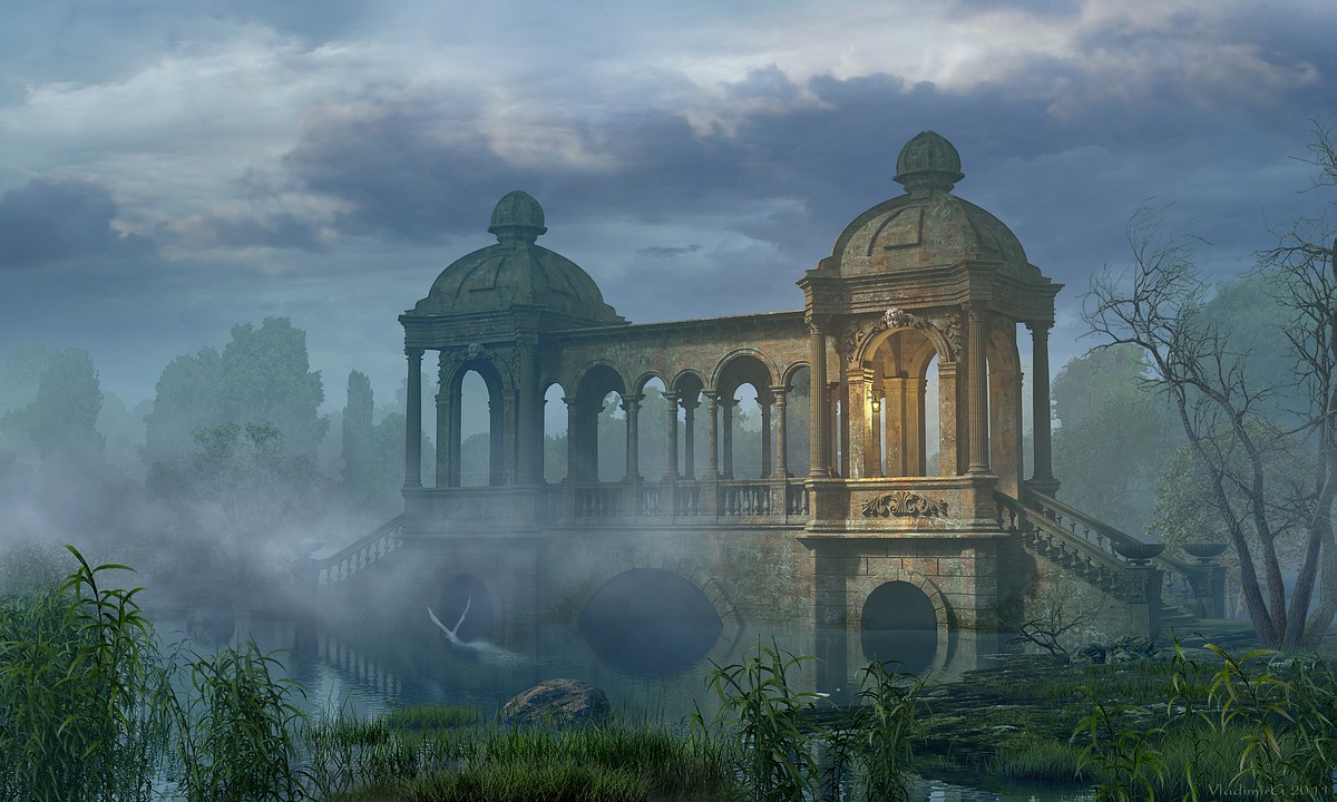 Да, атмосферка точно как из квеста ! Еще бы людей силуэтных на мост поставить, чтобы придать загадочности ) Понравилась картинка, особенно туман и пытающаяся взлететь птица ! +10