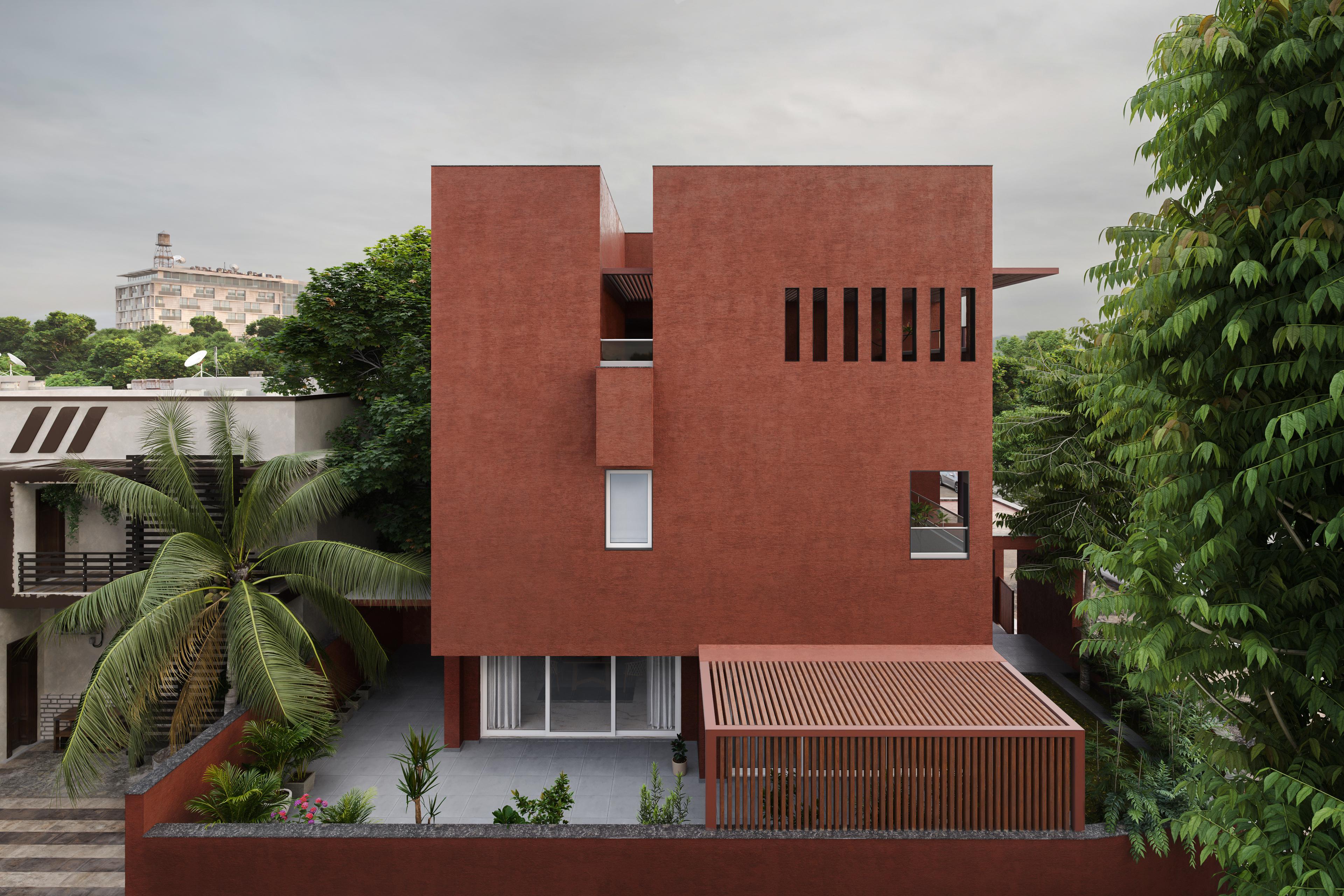 Red Box House This project was driven by contrasts and contrarian requirements, a strive towards minimising the shortcomings, using them to create positives. The context was a densely populated area, a hodge-podge of built-forms that are typical of so many middle-class Indian communities. Location: AHMEDABAD, INDIA Architects: The Grid Architects