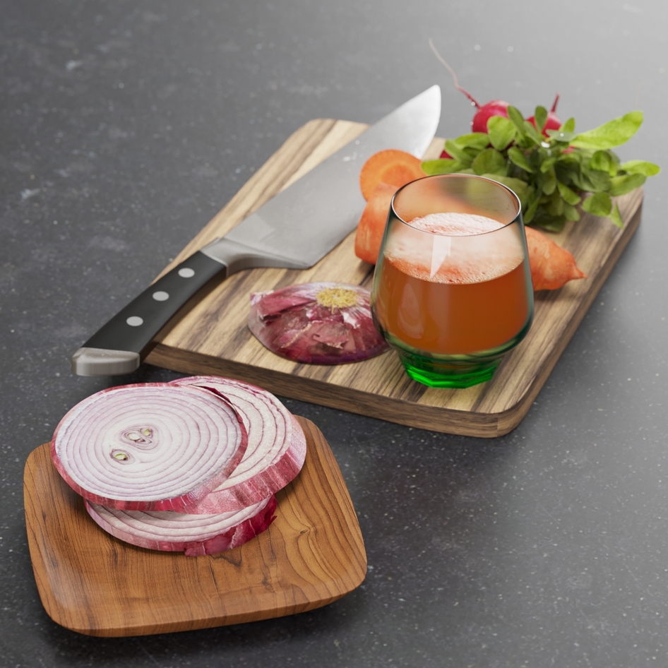 Очень круто выглядит, но мне кажется, что морковному соку не хватает подповерхностного рассеивания) немного пластмассово смотрится, а так прям как фотка)