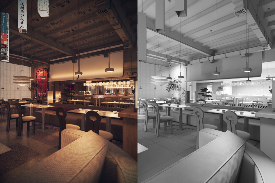 Визуализация ресторана г. Калининград 3dsMax • Corona • AI